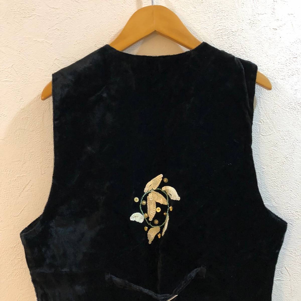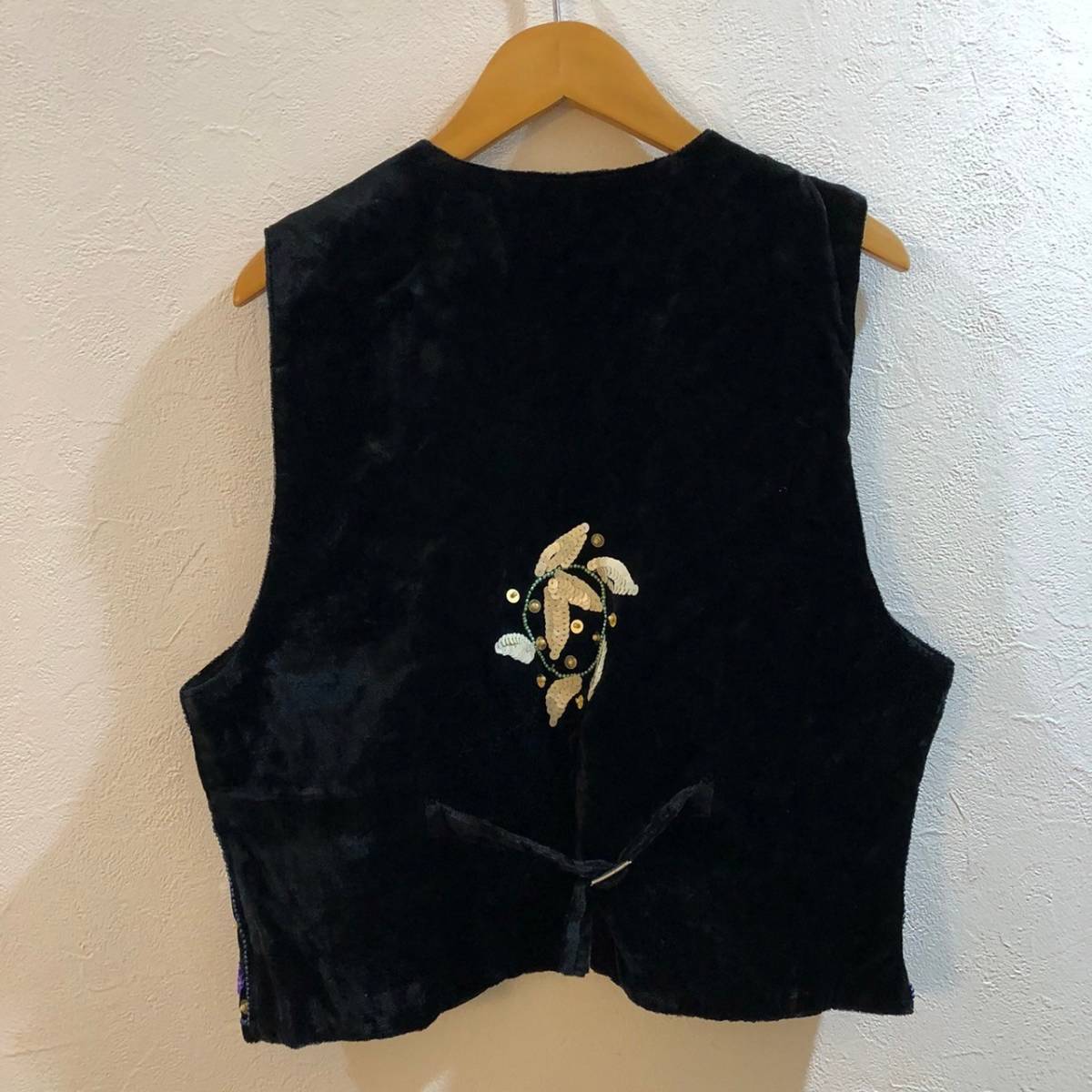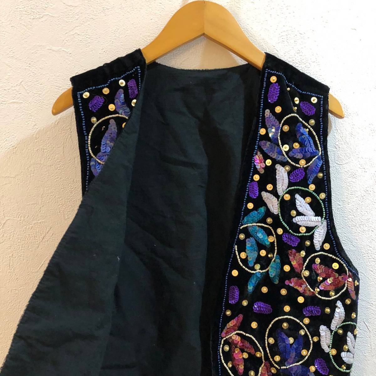 商品: / スパンコール付き ベロアベスト ブラック 黒 レディース F