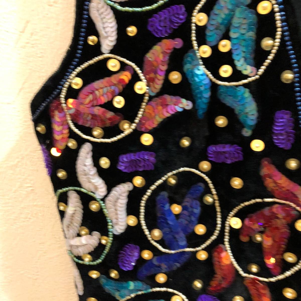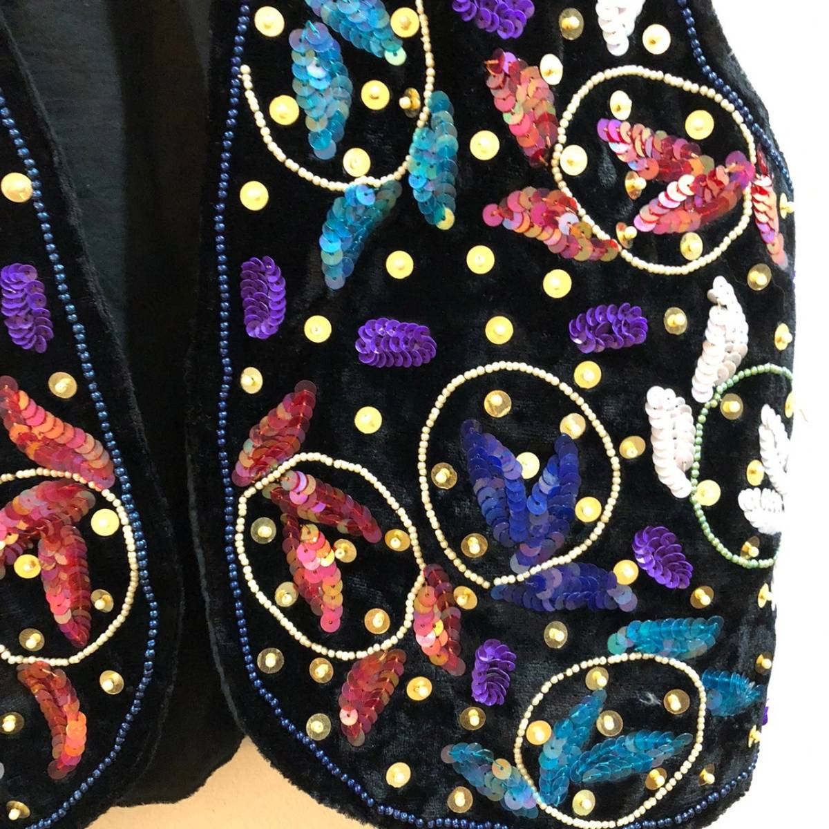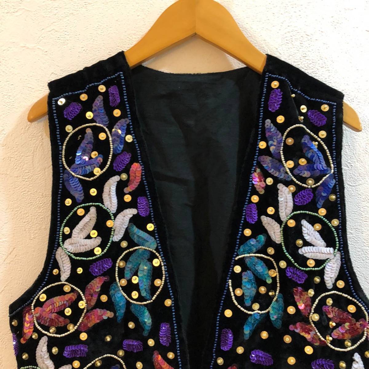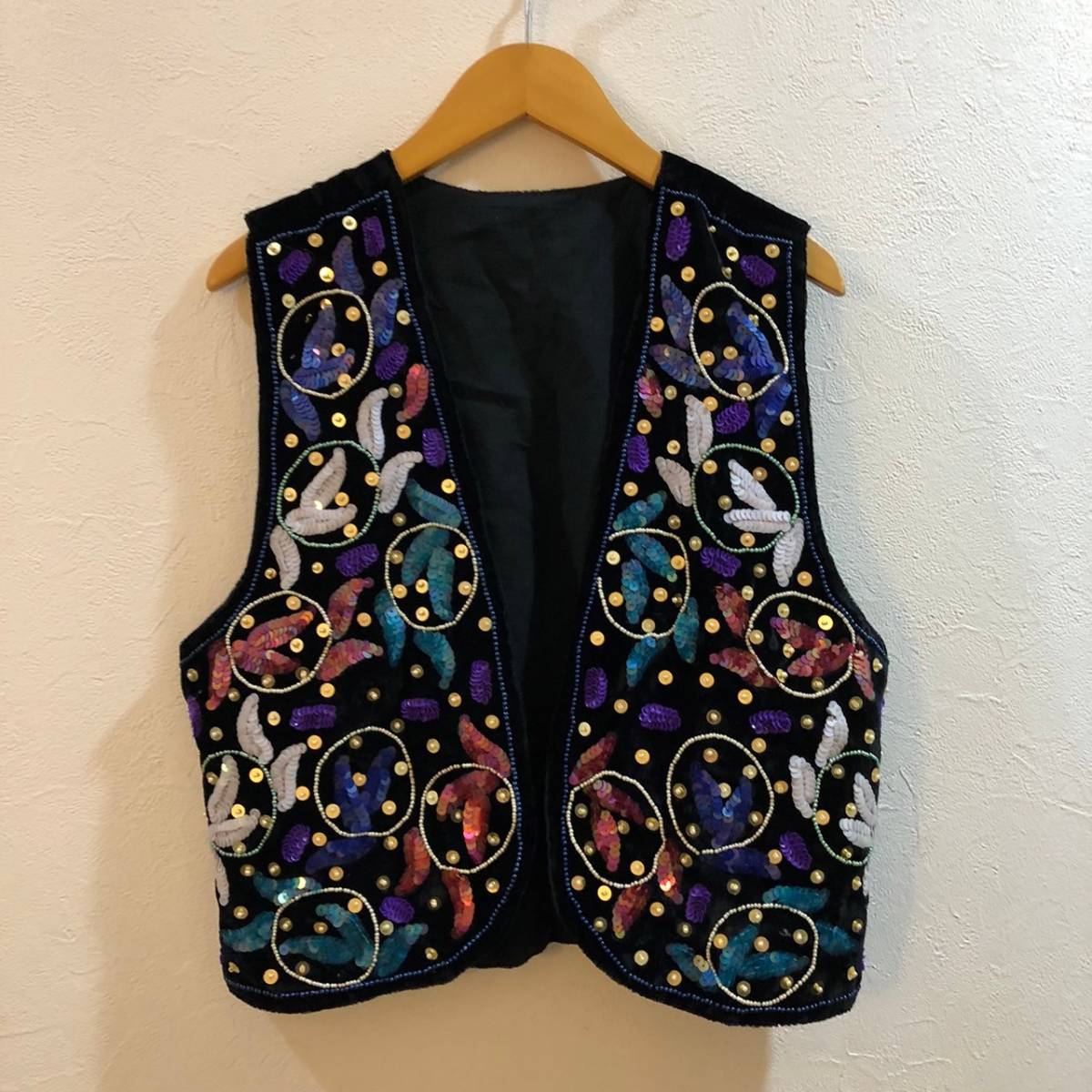 商品: / スパンコール付き ベロアベスト ブラック 黒 レディース F