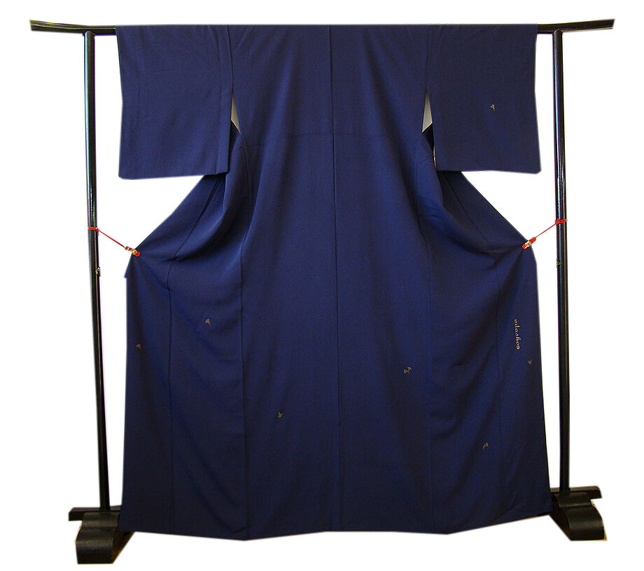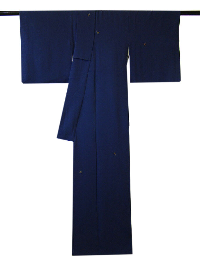 | 商品説明 | こちらのお品は「袷」でございますので、10月~5月までお召頂ければと思います。 とてもしなやかで柔らかな手触り良いぽってりとした重めの極上ちりめん地の生地、 渋い濃藍色地に銀杏柄の飛び柄の染柄、 八掛は青褐色(正絹)、幅広い年代の方にお召頂けます。 |