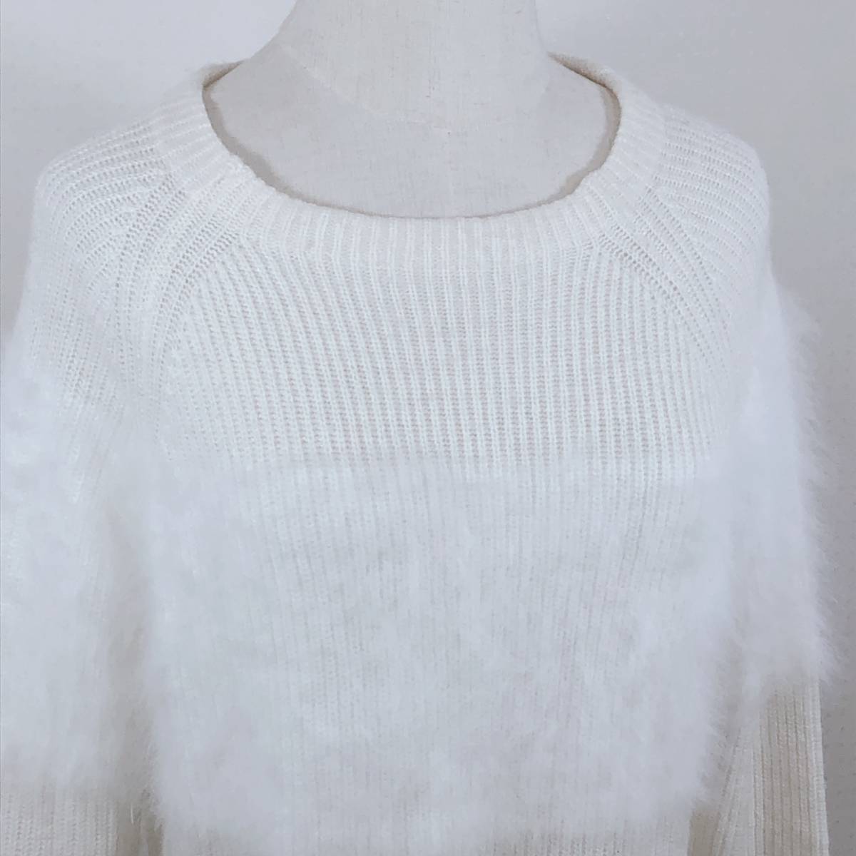 Y0117 UNIVERVAL MUSE ユニバーバル ミューズ レディース トップス ニット セーター 長袖 ホワイト 白 アイボリー アンゴラ混 毛素材含
