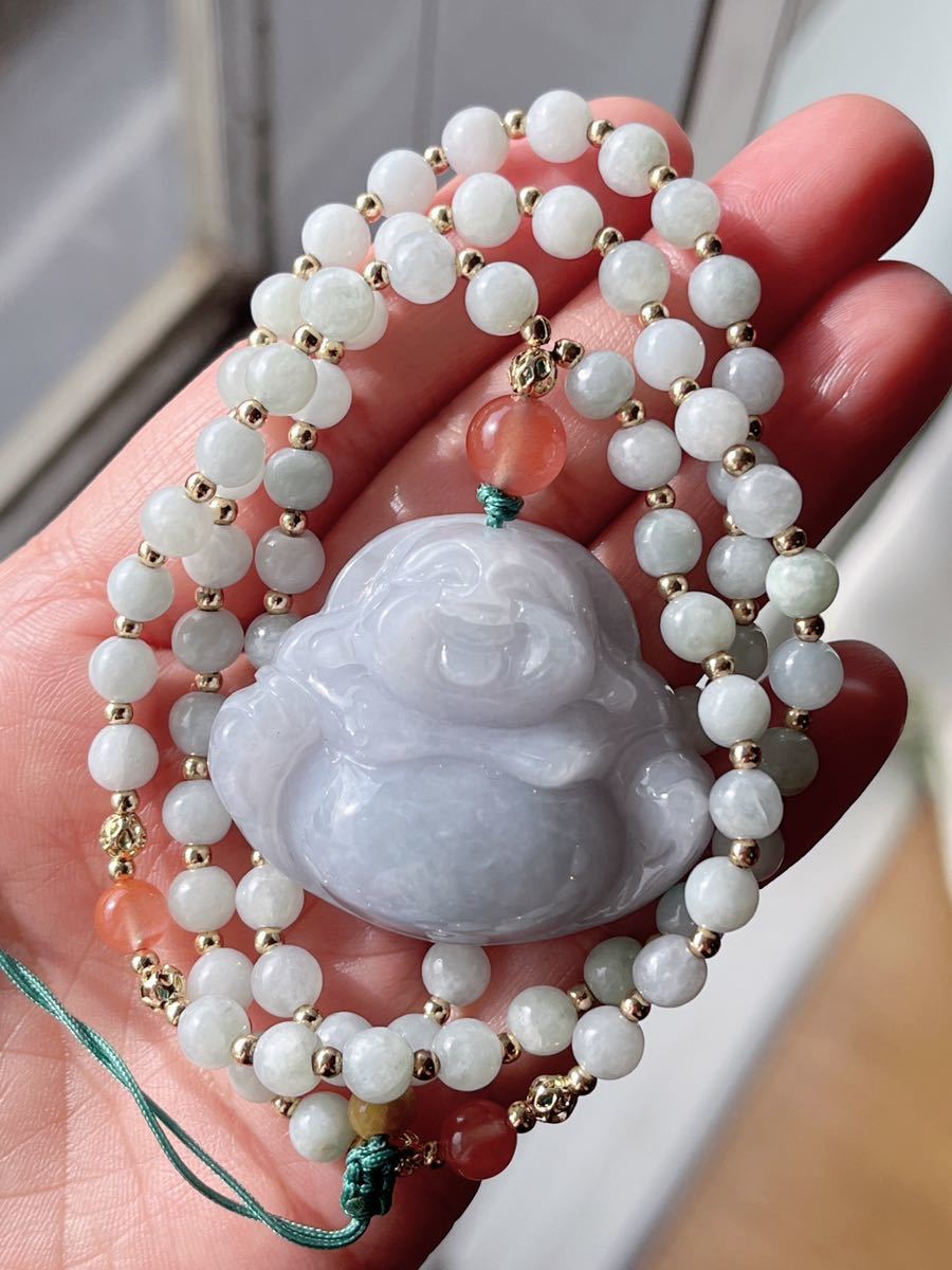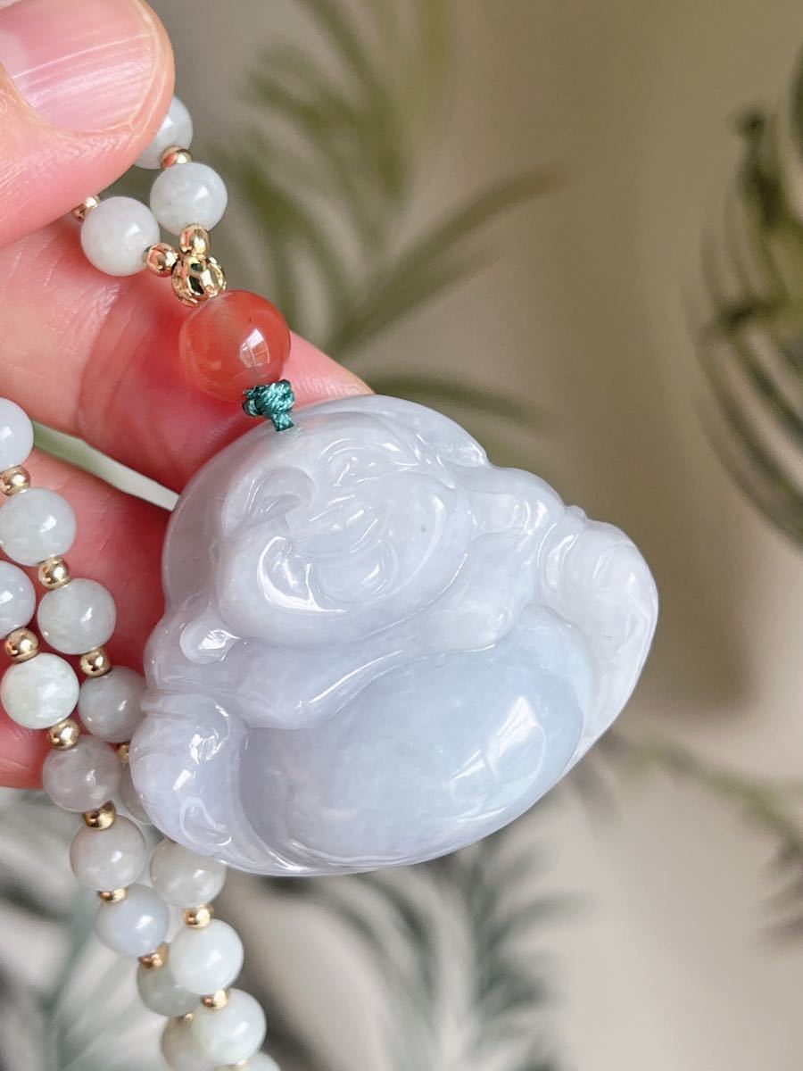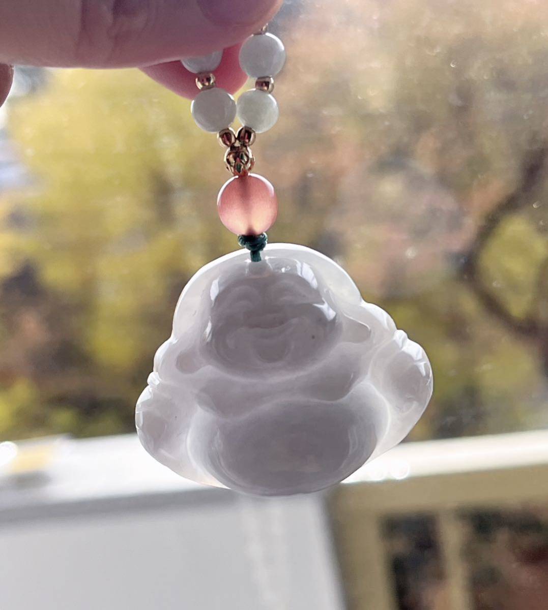 天然逸品ミャンマー翡翠A(紫を内に流す)弥勒仏のネックレス。