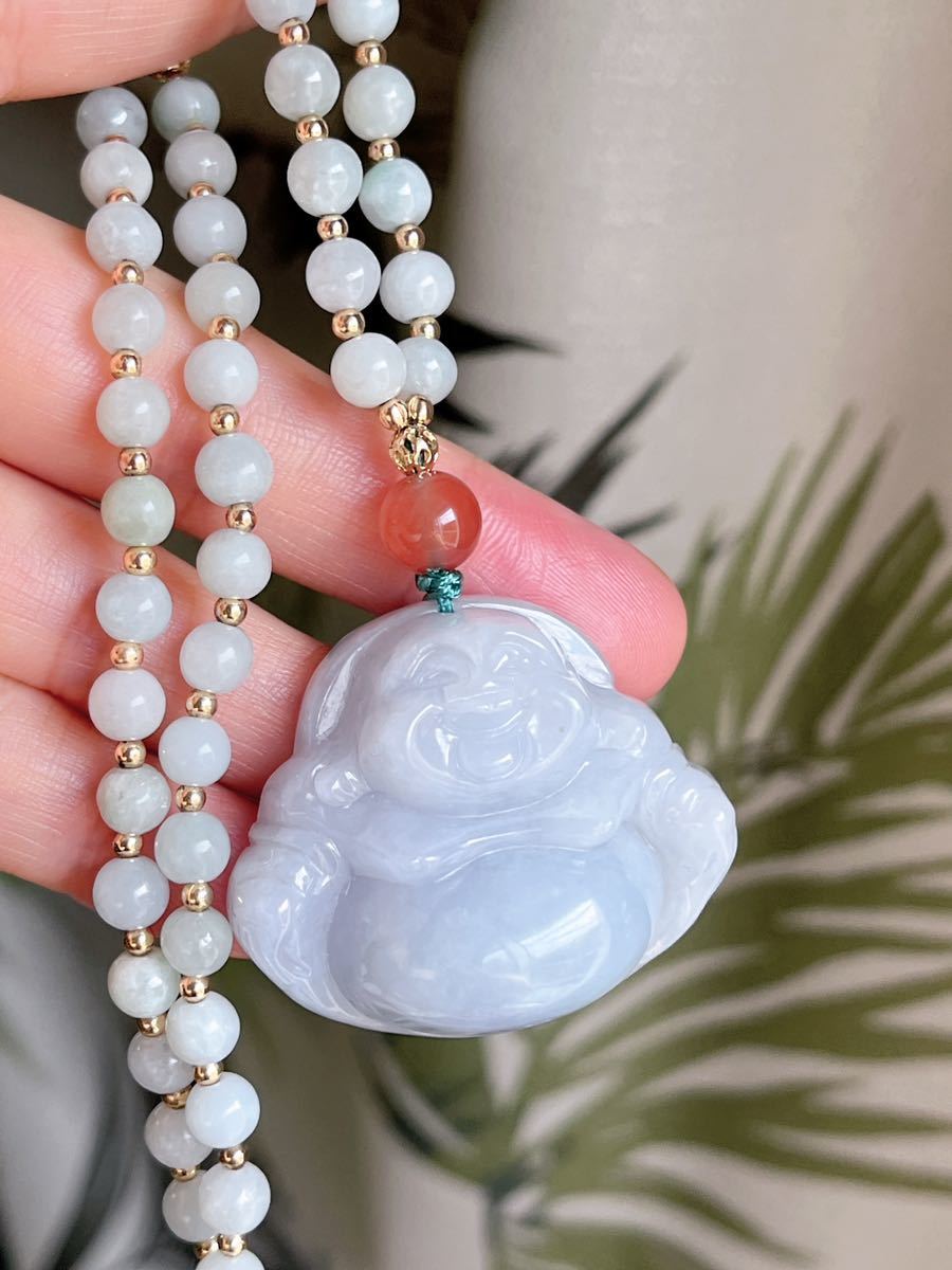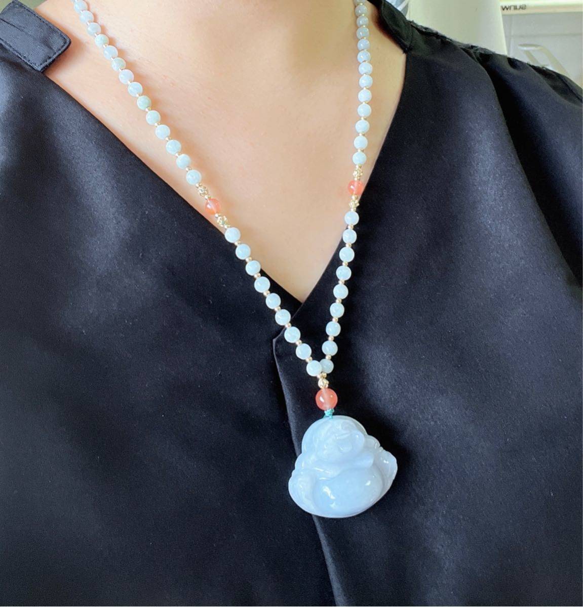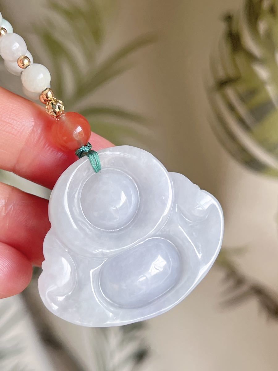 天然逸品ミャンマー翡翠A(紫を内に流す)弥勒仏のネックレス。