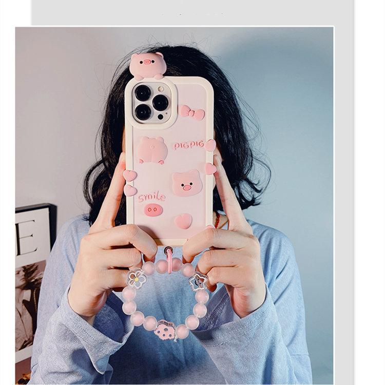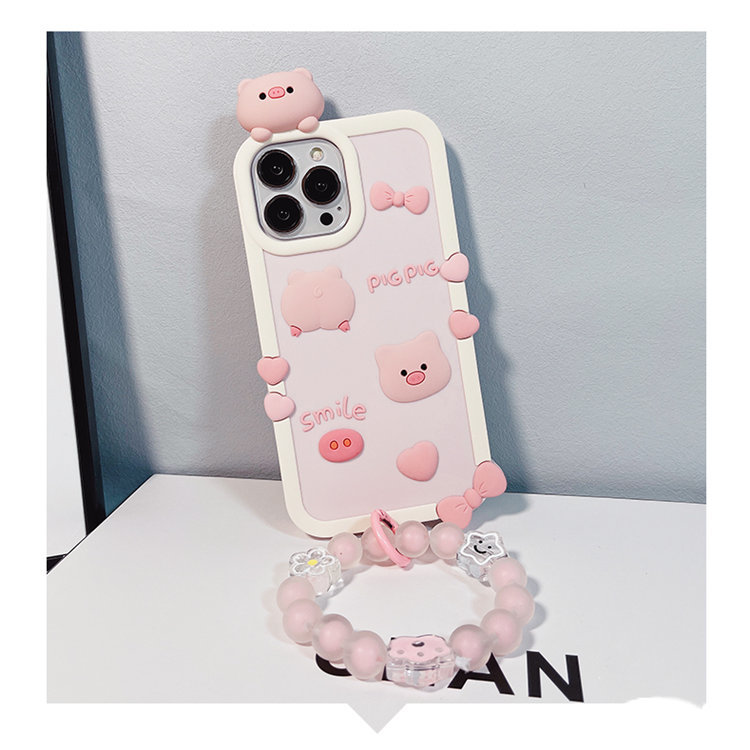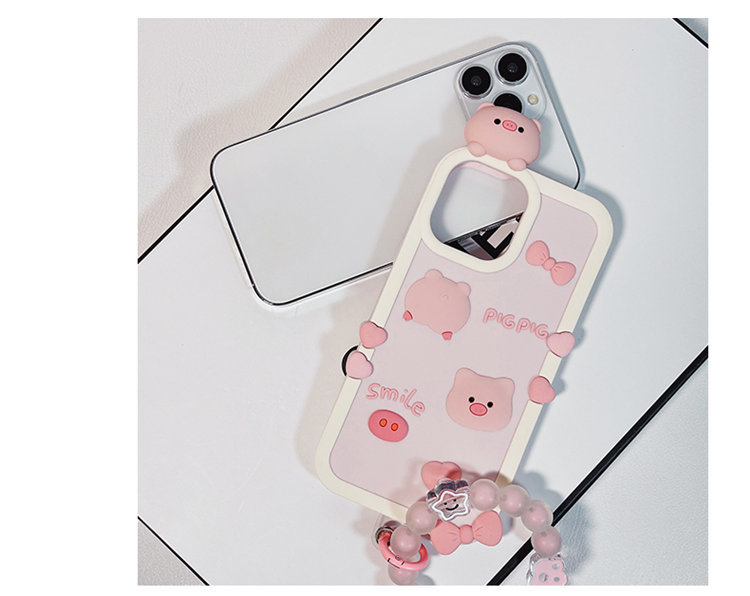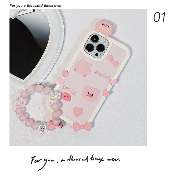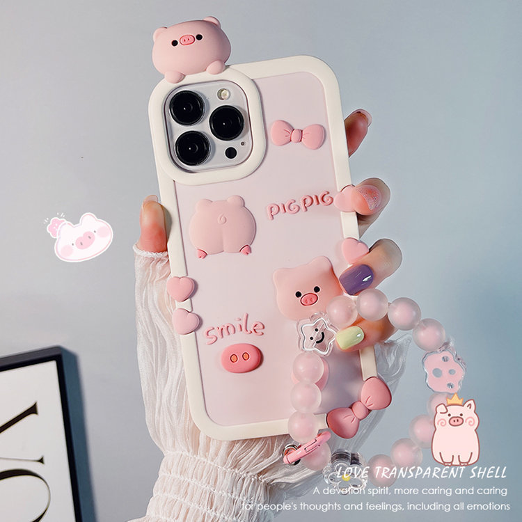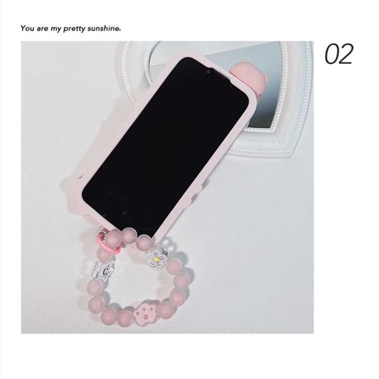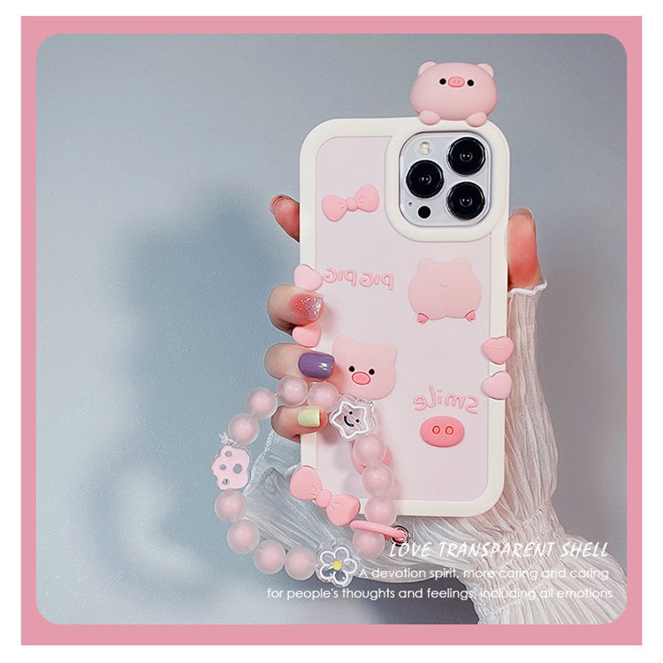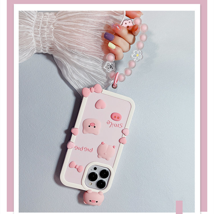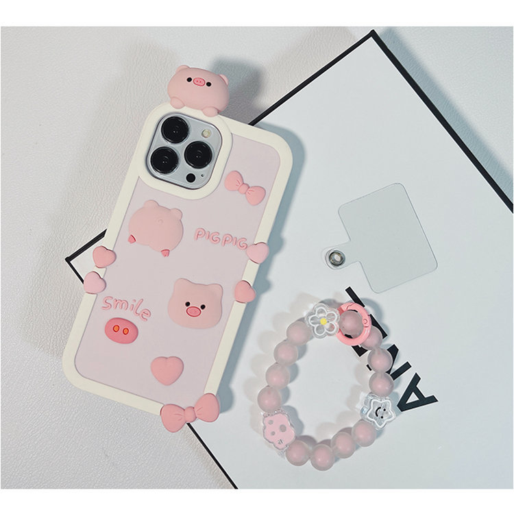iPhone 13 ケース iPhone13 カバー 6.1インチ スマホケース 保護カバー 背面 おしゃれ シリコンカバー 耐衝撃 ブレスレット付き ピンク pig | |||