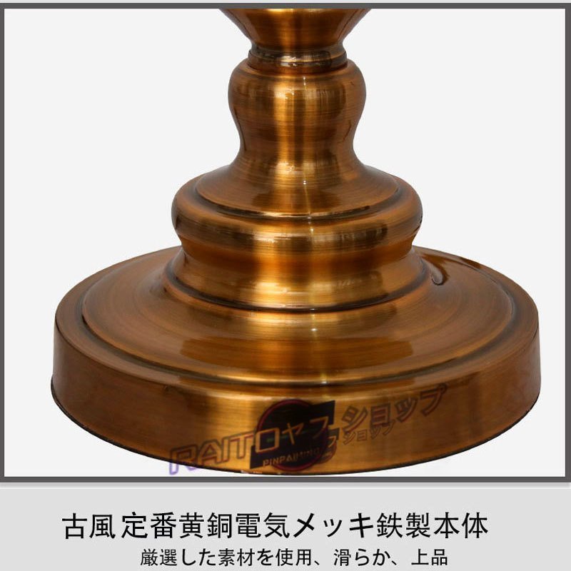 【素材】:カラーガラスのランプシェード (職人の錫ハンダ付け)鉄製ベース(表面銅メッキ)