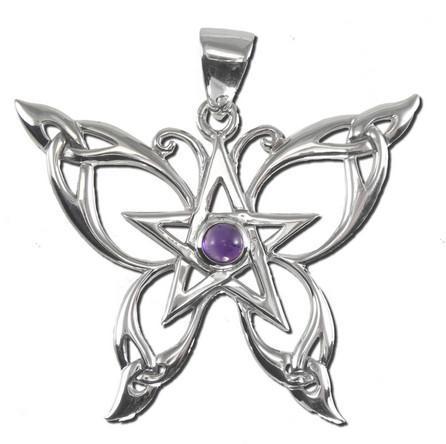 Dryad Design: Sterling Silver Butterfly Pentacle Pendant with Amethyst