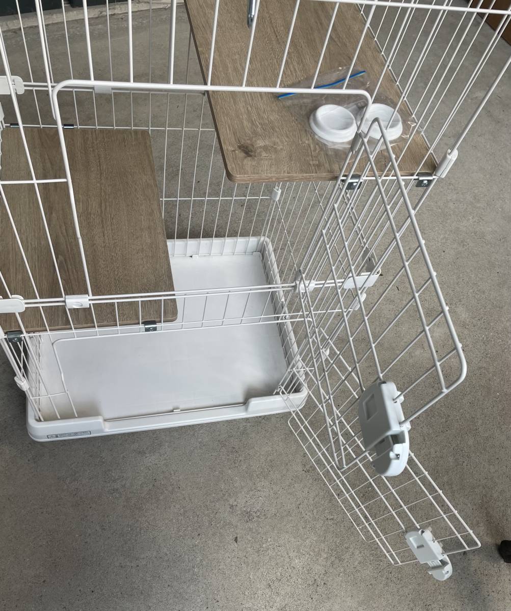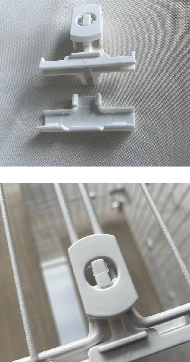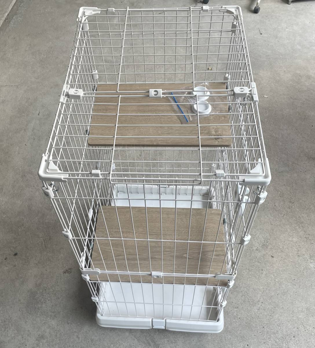 ケージのラインを挟んではめ込みを90度回して固定する器具で組み立てます。