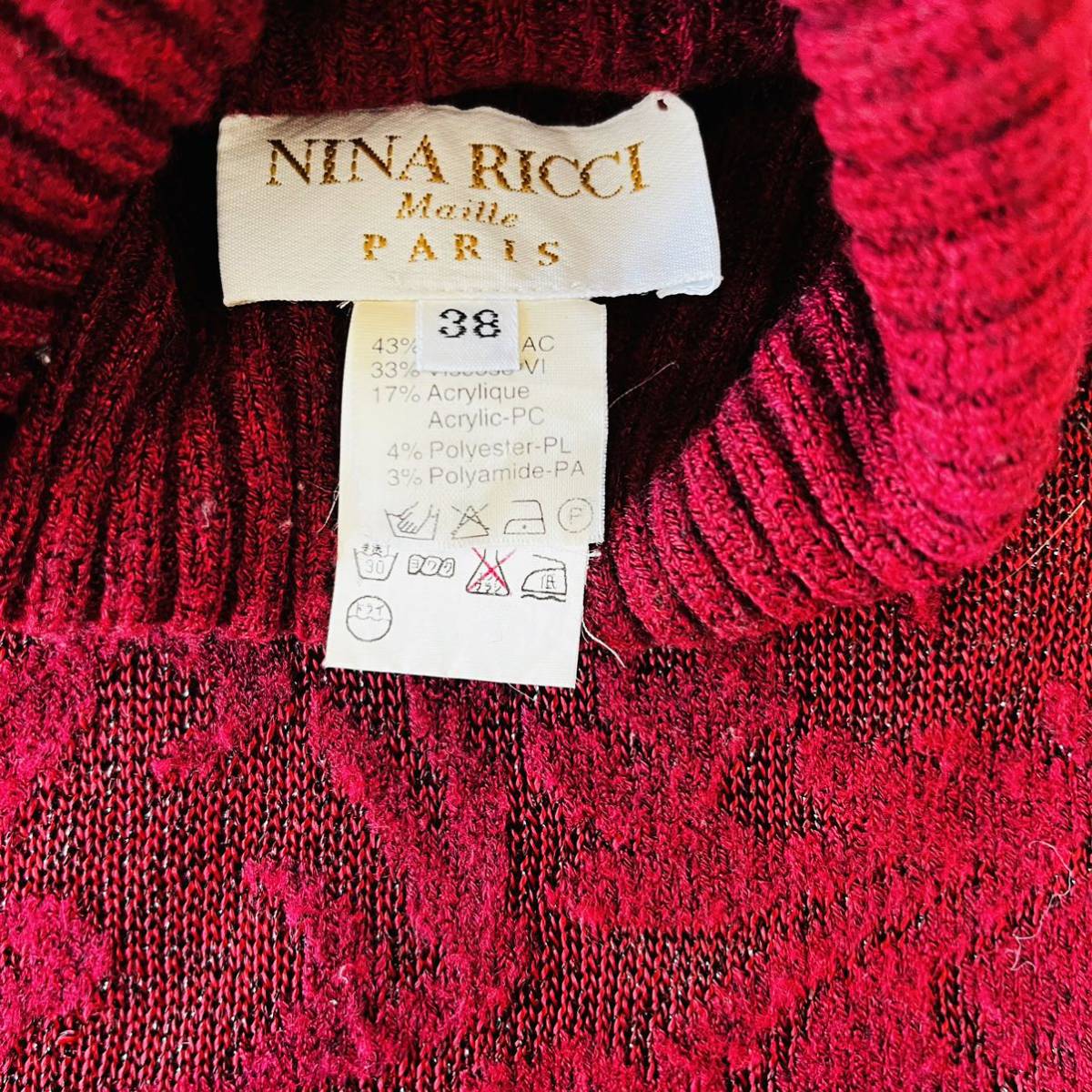 NINA RICCI ニナリッチ◆フランス製 タートルネックセーター ニット◆柄模様あり・返品不可