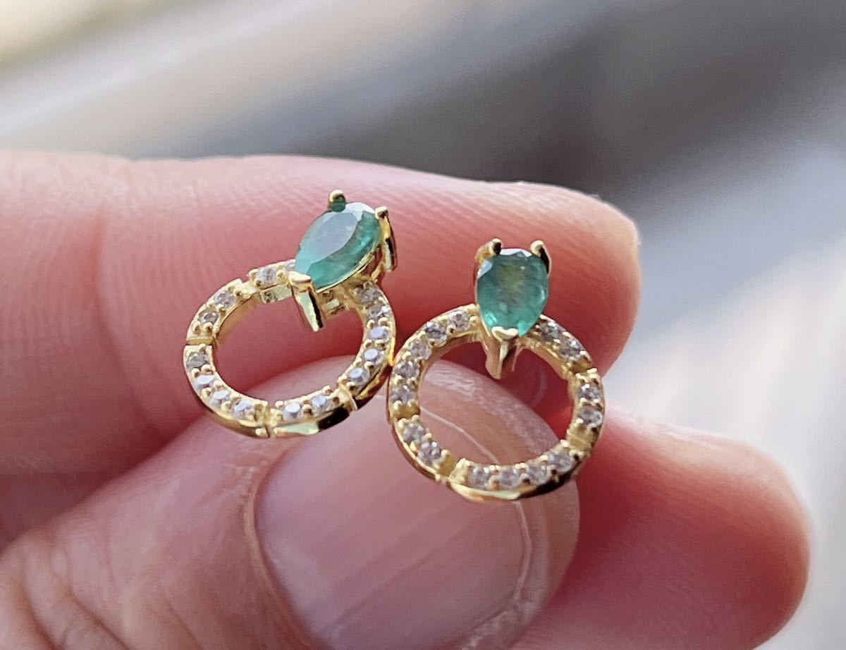 天然石 逸品エメラルドのピアスのサイズ約:9mm*11.2mm*厚さ3mm;