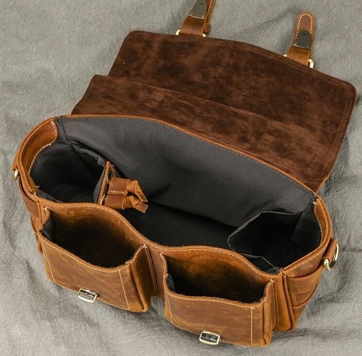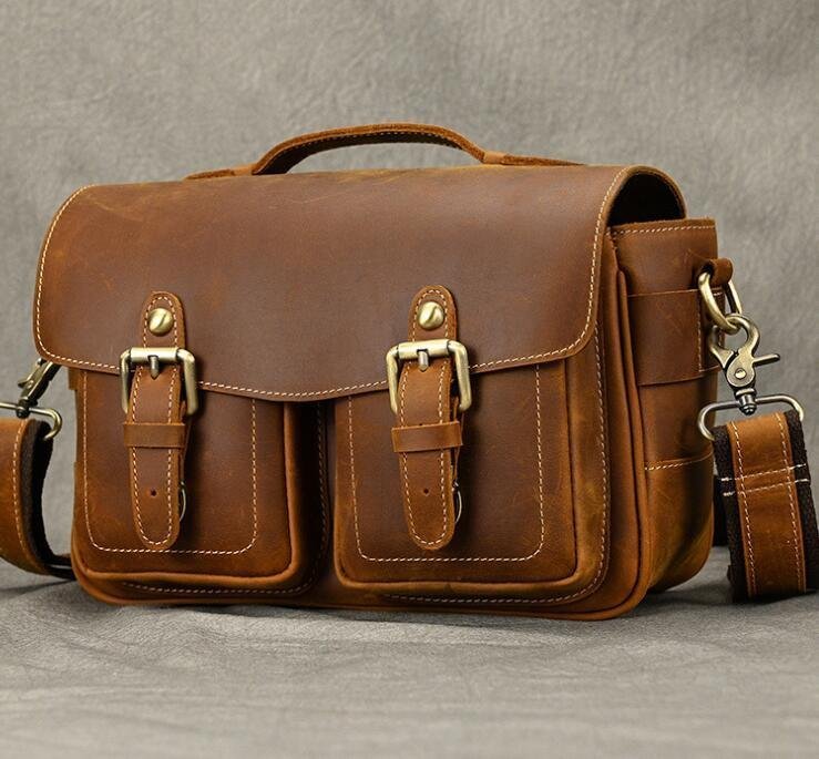新型牛革一眼レフカメラバッグレンズ保護胆管シングルショルダーバッグ