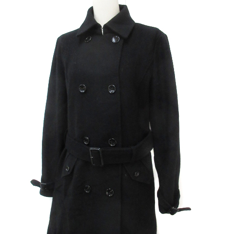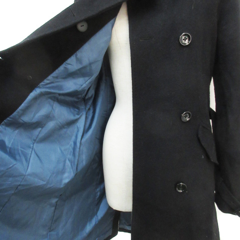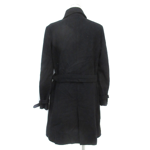 ビームスライツ BEAMS Lights Pコート ピーコート ロング丈 ステンカラー ウール ダブルボタン ベルト付き 40 黒 ブラック /FF5 レディース