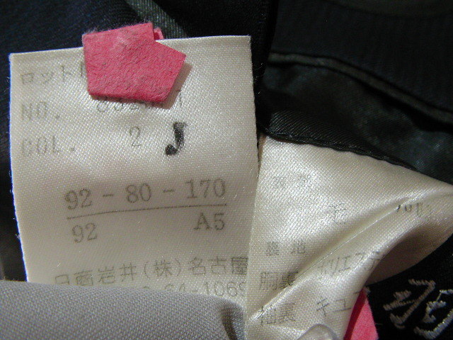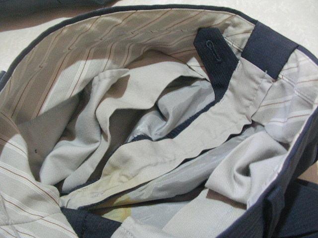 ダメージ箇所 :ジャケットネーム刺繍あり。パンツのファスナーが固いです。パンツ内側にシミあり。