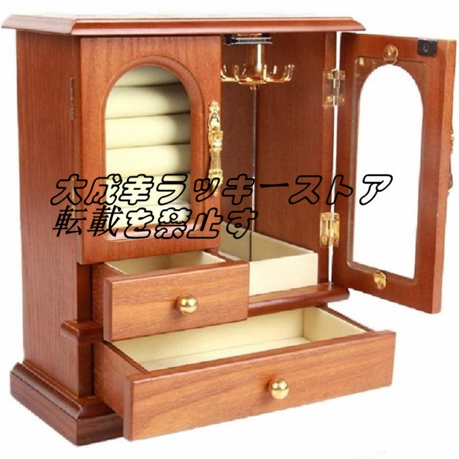 実用★ ジュエリーボックス アクセサリー 小物入れ ケース マルチ 収納 宝石箱 収納箱 ネックレス 指輪 アンティーク調 (ブラウン) おしゃ