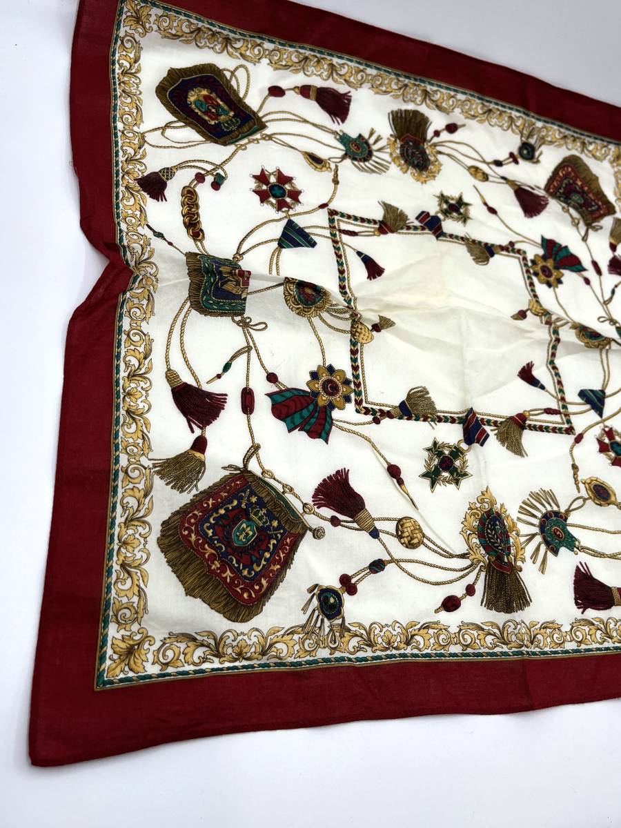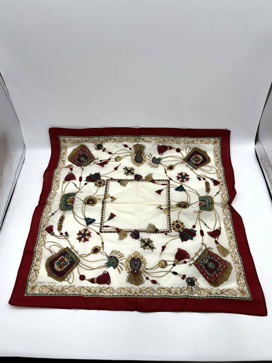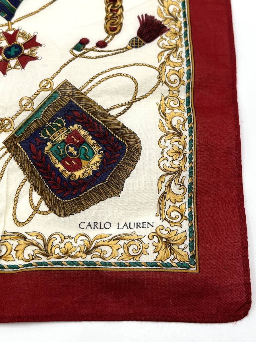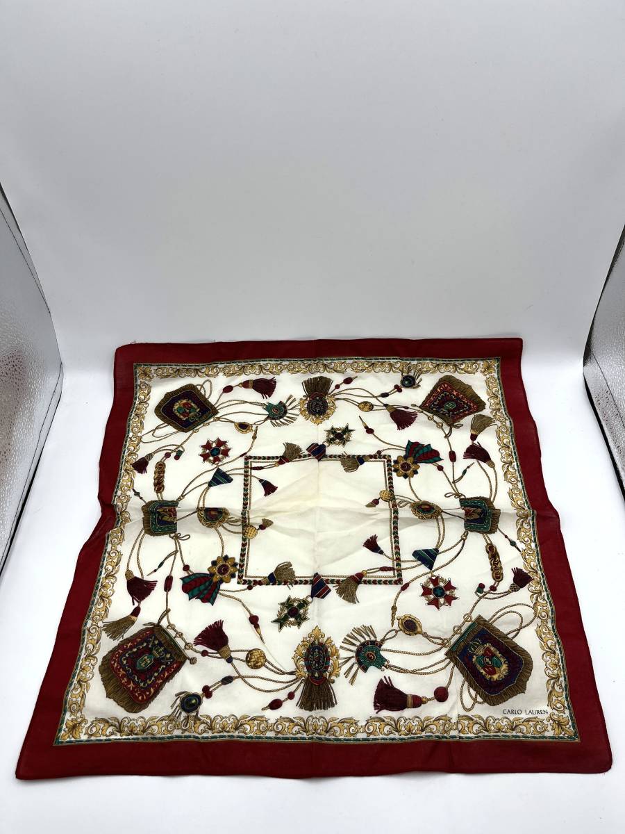 CARLO LAUREN カルロ ローレン ハンカチ バンダナ レッド系 タッセル柄 紋章柄 W48 H47