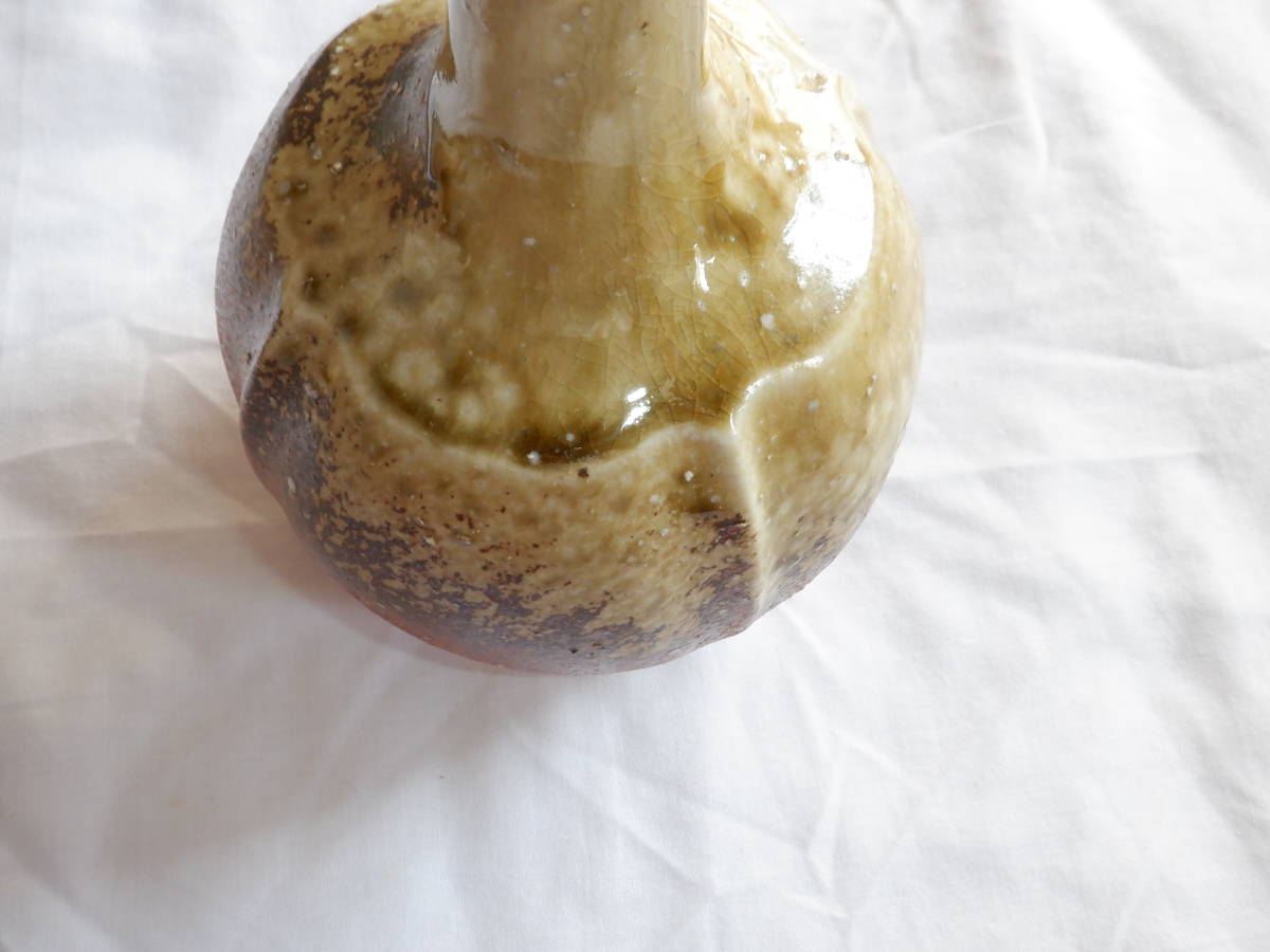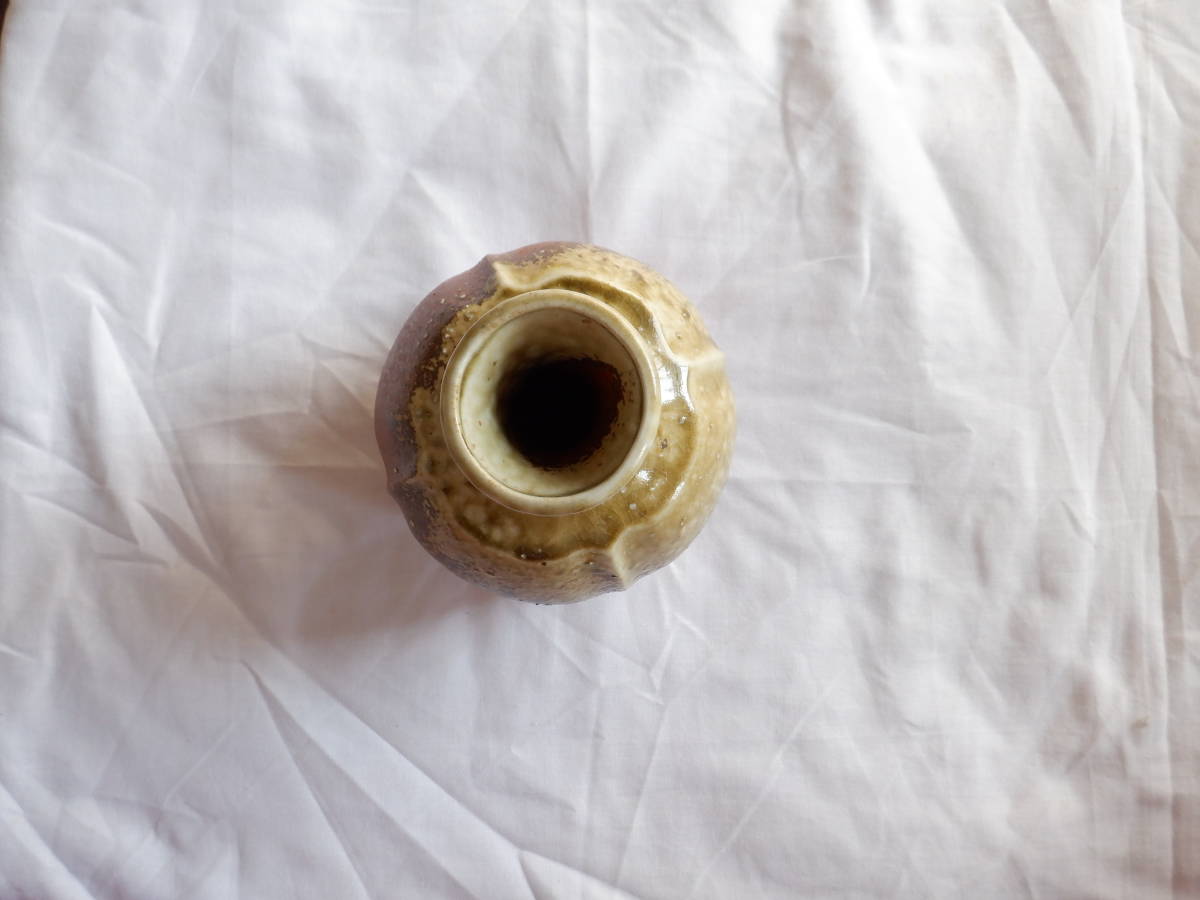 口から胴の半分くらいまで黄褐色の釉薬が掛かっています。