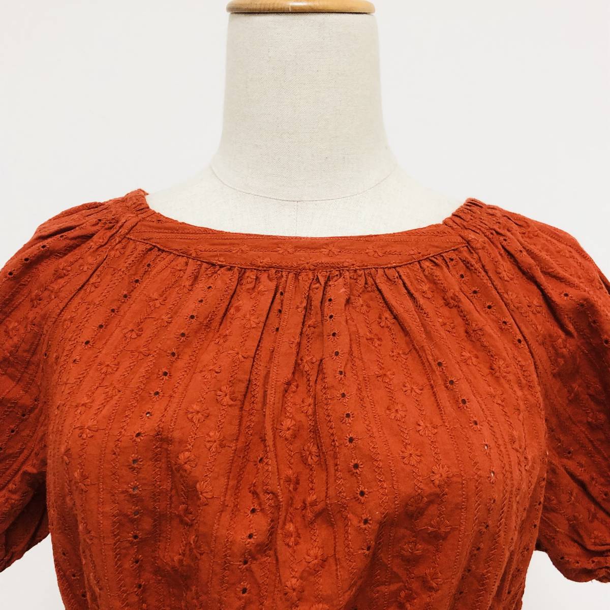 k1668 美品 eath music&ecology アース トップス 半袖 綿100% 薄手 シャーリング F オレンジ系 レディース シンプルデイリーカジュアル