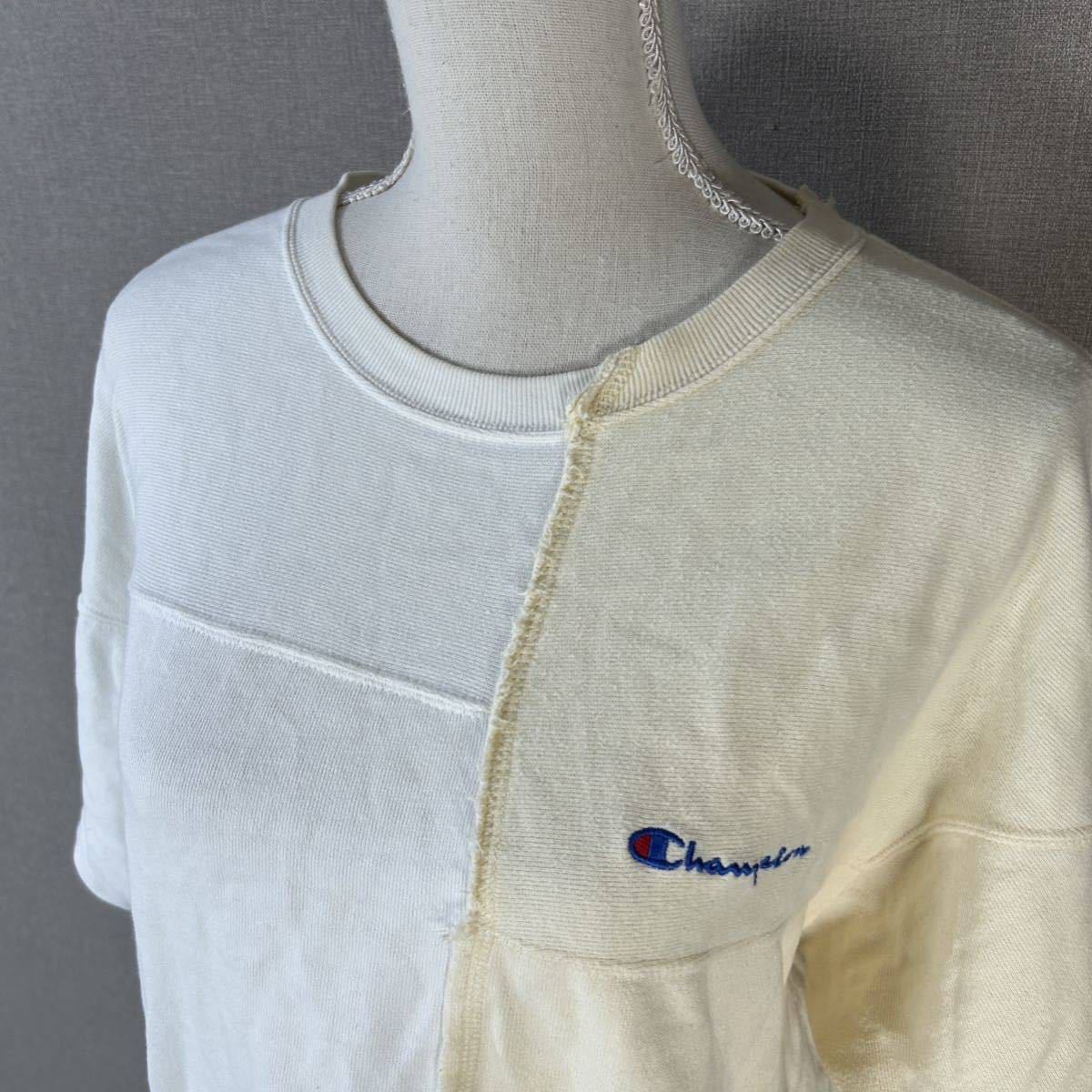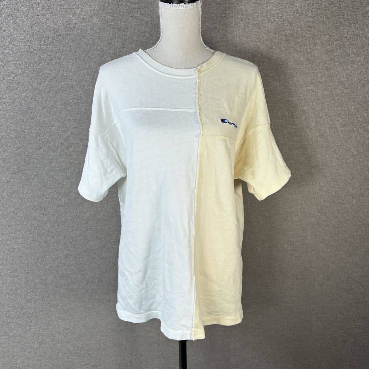 YT0646 100円スタート♪ Champion チャンピオン パッチワークデザイン コットンTシャツ Mサイズ 半袖 ワイドシルエット コットン100%