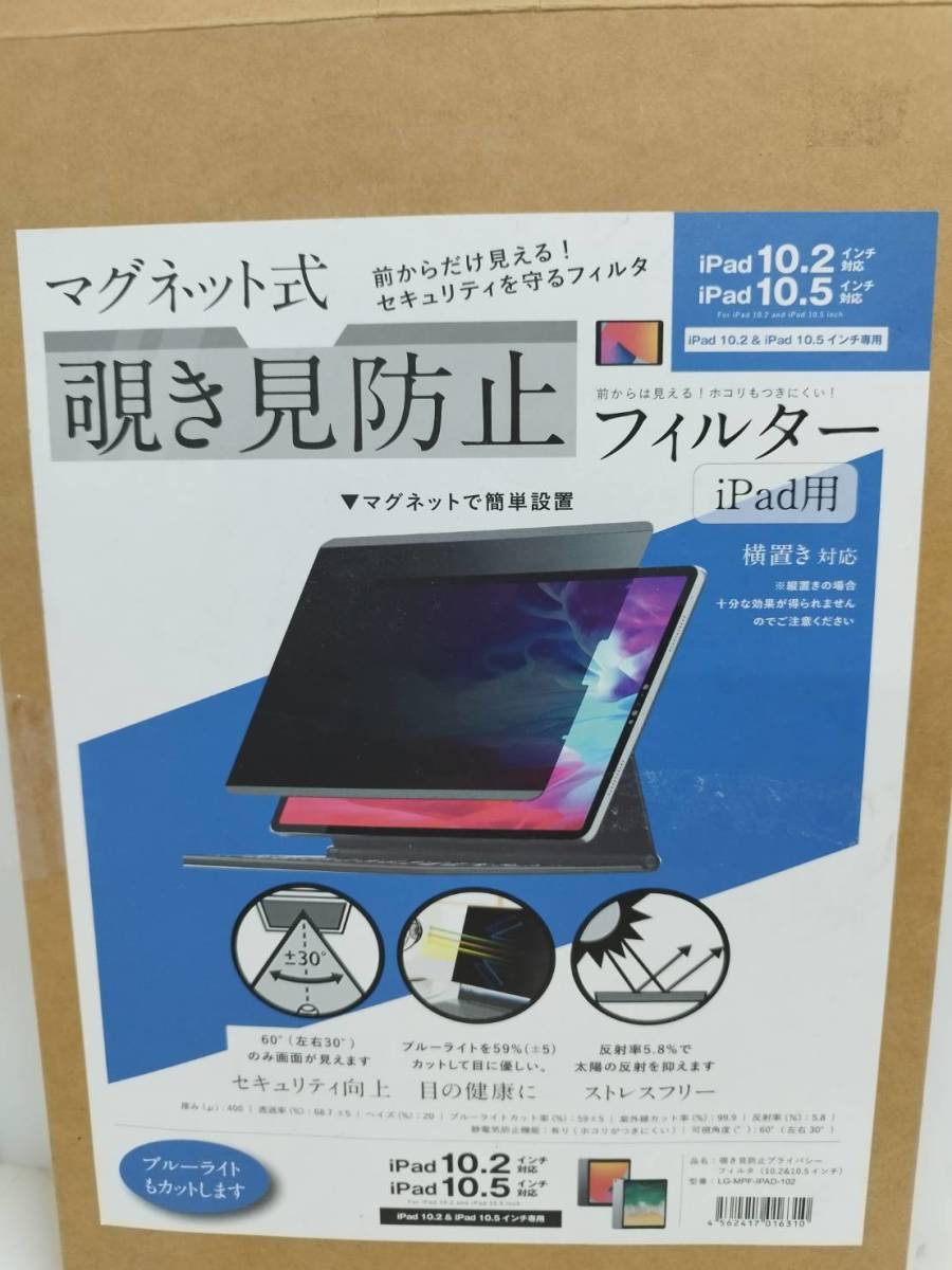 【開封未使用】iPad 10.2/10.5インチ対応 マグネット式フィルター 型番:LG-MPF-IPAD-102