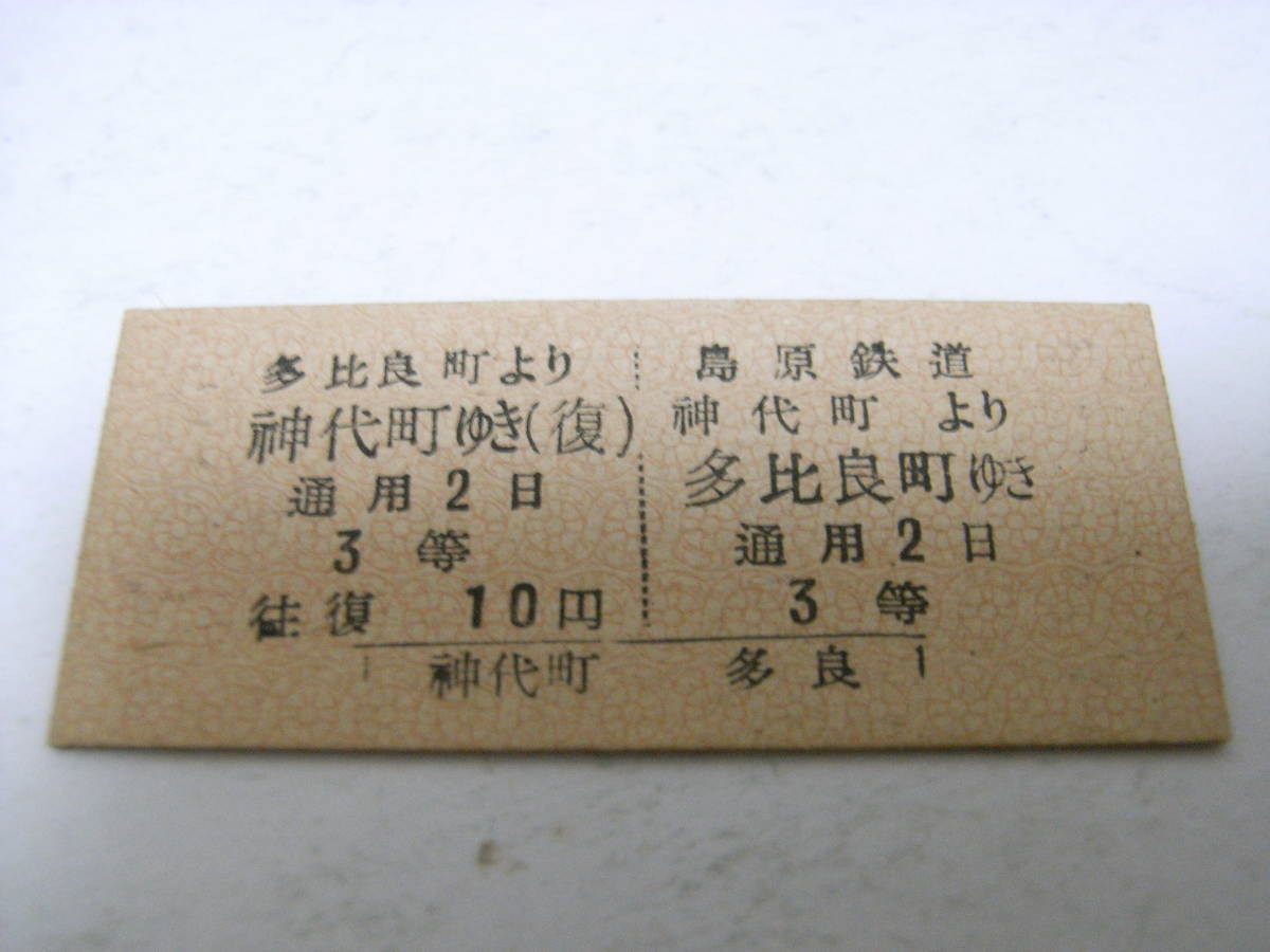 島原鉄道 往復乗車券 神代町から多比良町ゆき/多比良町から神代町ゆき 3等往復10円