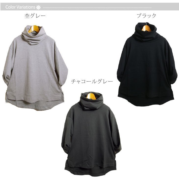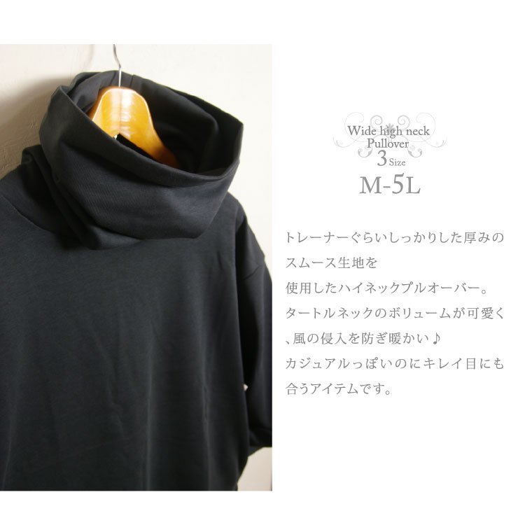 タートルネック 長袖 レディース 厚手 ロンT ワイドハイネック スムース プルオーバー チャコールグレー LL~3L 新品