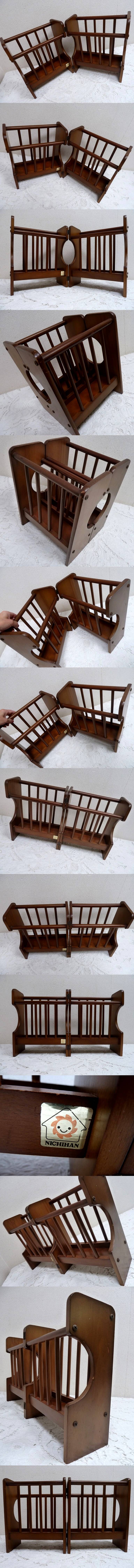 (☆BM)NICHIHAN/ニチハンマガジンラック 木製 折り畳み式 コンパクト 昭和レトロ 雑誌 新聞入れ アンティーク シンプル