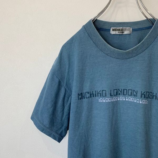 [KWT405] MICHIKO LONDON 文字プリントTシャツ ライトブルー Mサイズ ポス