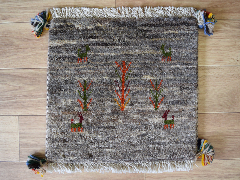 新品 ペルシャ ギャッベ 座布団 クッション サイズ ミニラグ 40 x 41 cm No.372 肉厚 ウール 手織り 絨毯 ギャベ チェアマット