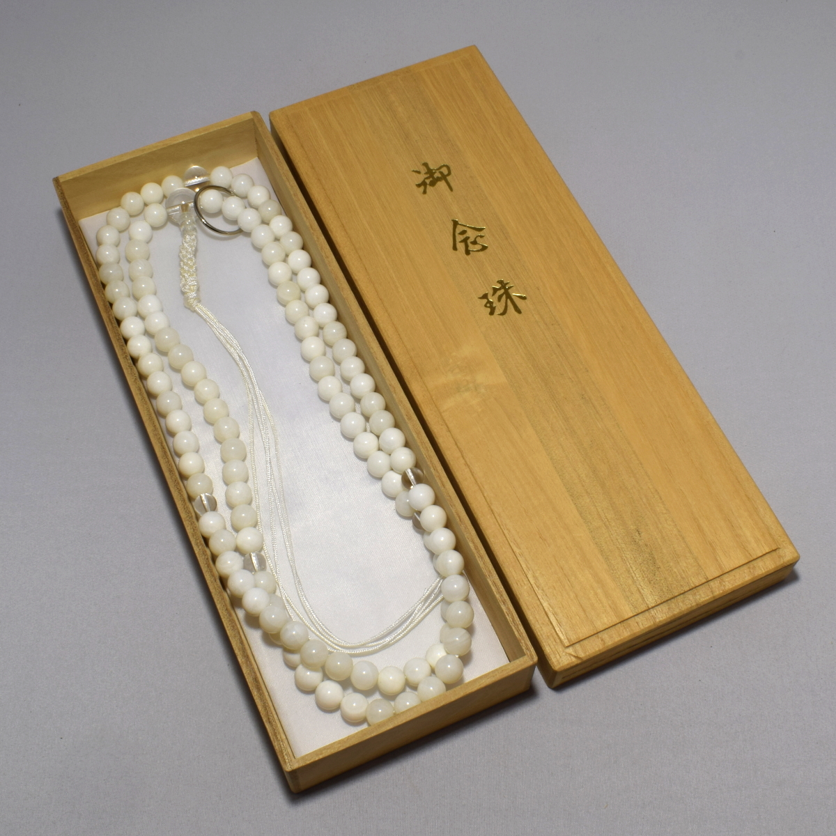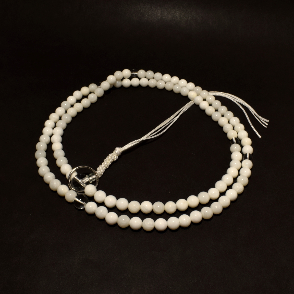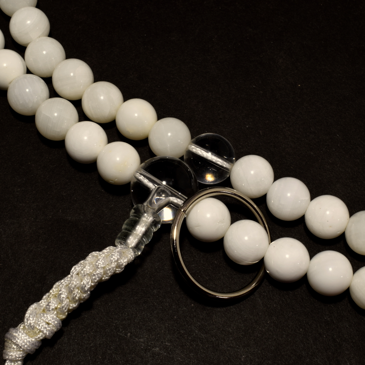 商品説明 | 主玉(シャコ貝) 約 10mm 天玉(水晶) 約 8mm 向玉(水晶) 約 12mm 親玉(水晶) 約 15mm 輪の引き伸ばしサイズ 約 52cm |