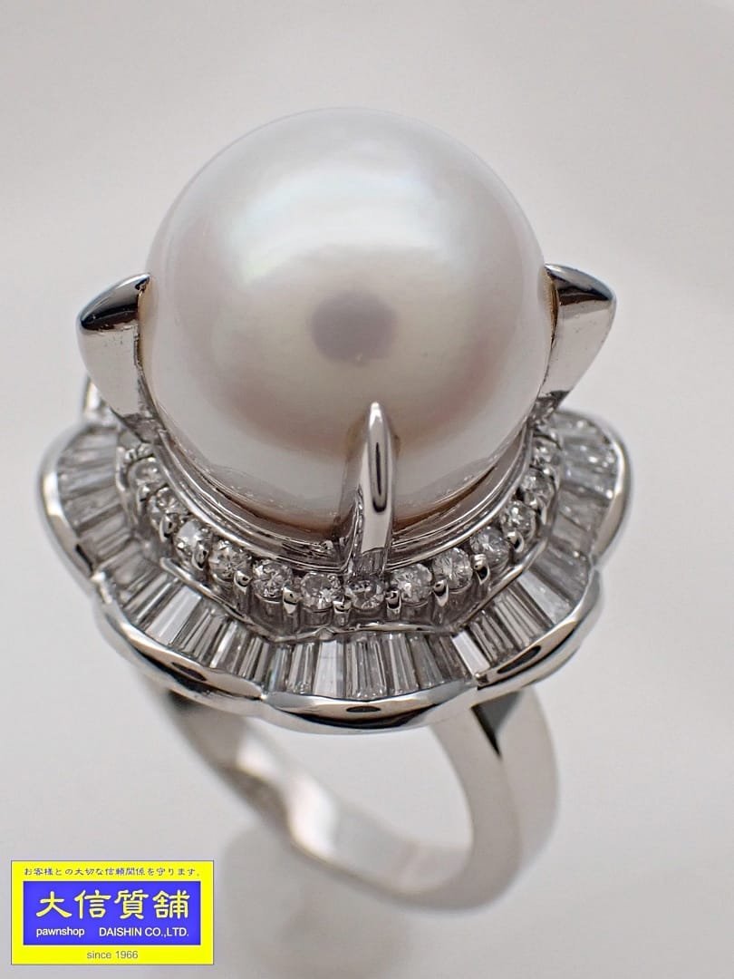 商品名 | Pt900 プラチナ 南洋真珠 ダイヤ リング 13.1mm D0.85+0.31ct 13号 20.2g 中古A+ 【送料無料】 | ||||||||||||||||