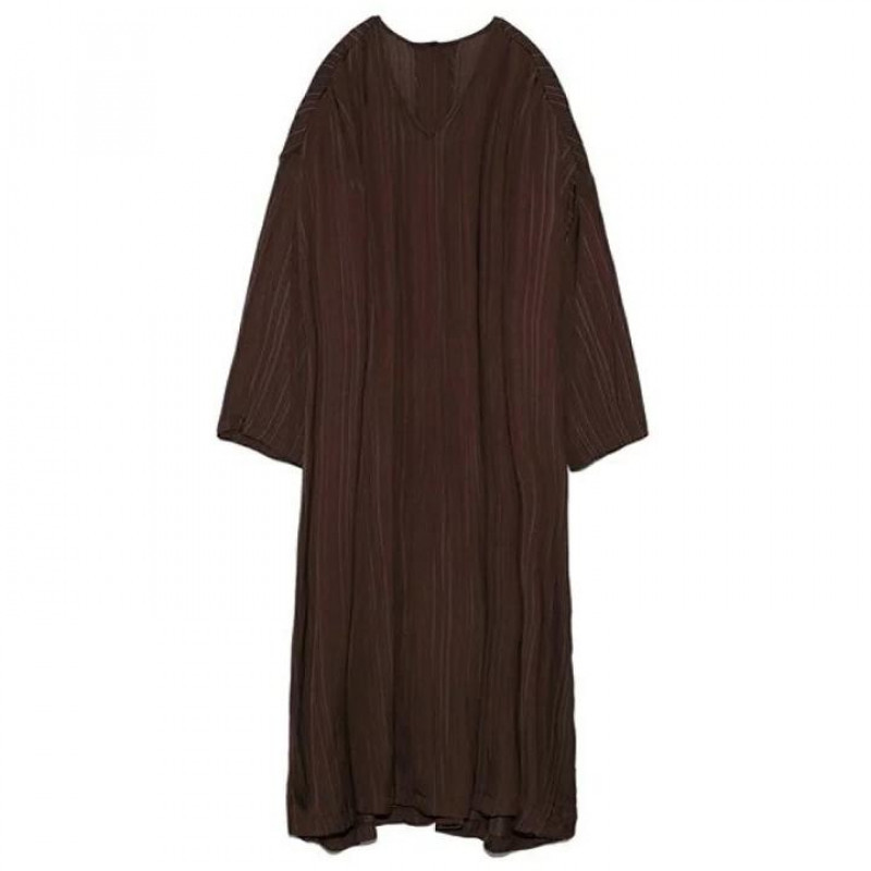 一見無地に見えるさり気ないマルチストライププリントをジャガード織りで表現したロングワンピース。