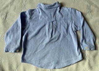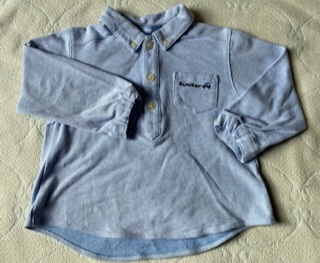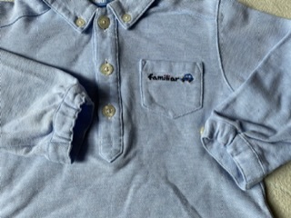 ファミリア★90★長袖シャツ★胸ロゴ・車刺繍・きれいブルー★ボタンダウン★袖口ゴム入り m