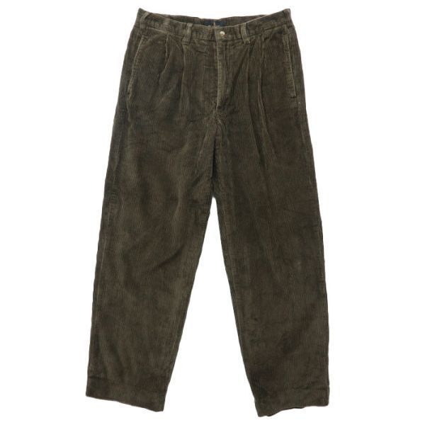古着 太畝 コーデュロイパンツ ツータック オリーブグリーン サイズ表記:W34L32 gd37007