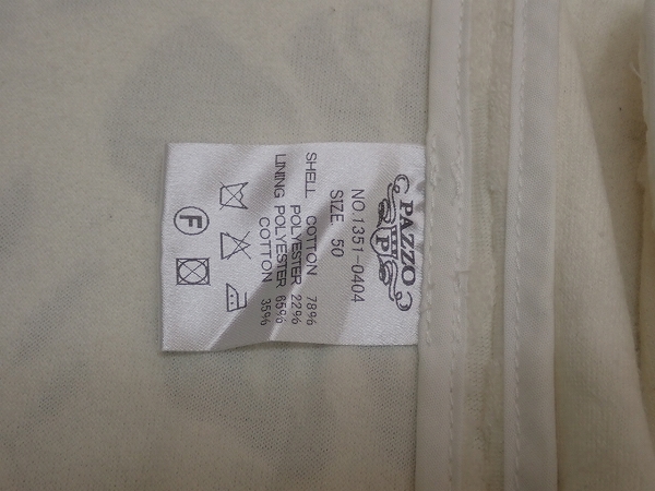 色 オフホワイト 素材 表地 コットン78% ポリエステル22% 裏地 ポリエステル65% コットン35% | |