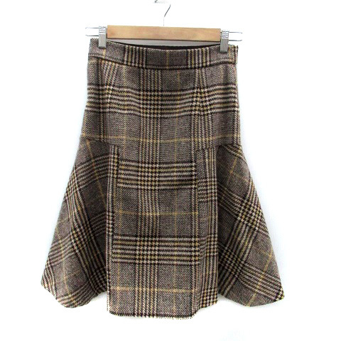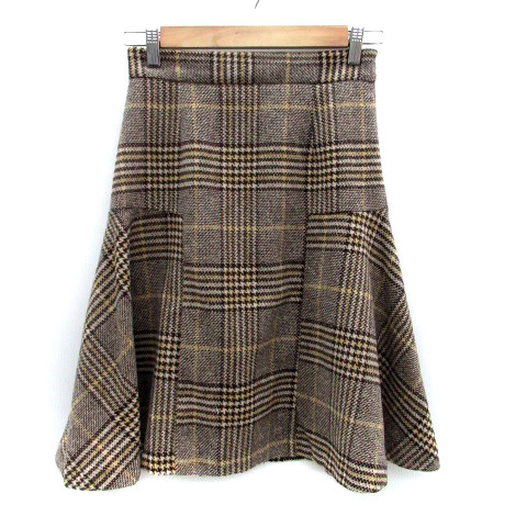 ロペピクニック ROPE Picnic フレアスカート ひざ丈 グレンチェック柄 38 ベージュ 茶色 ブラウン /HO33 レディース