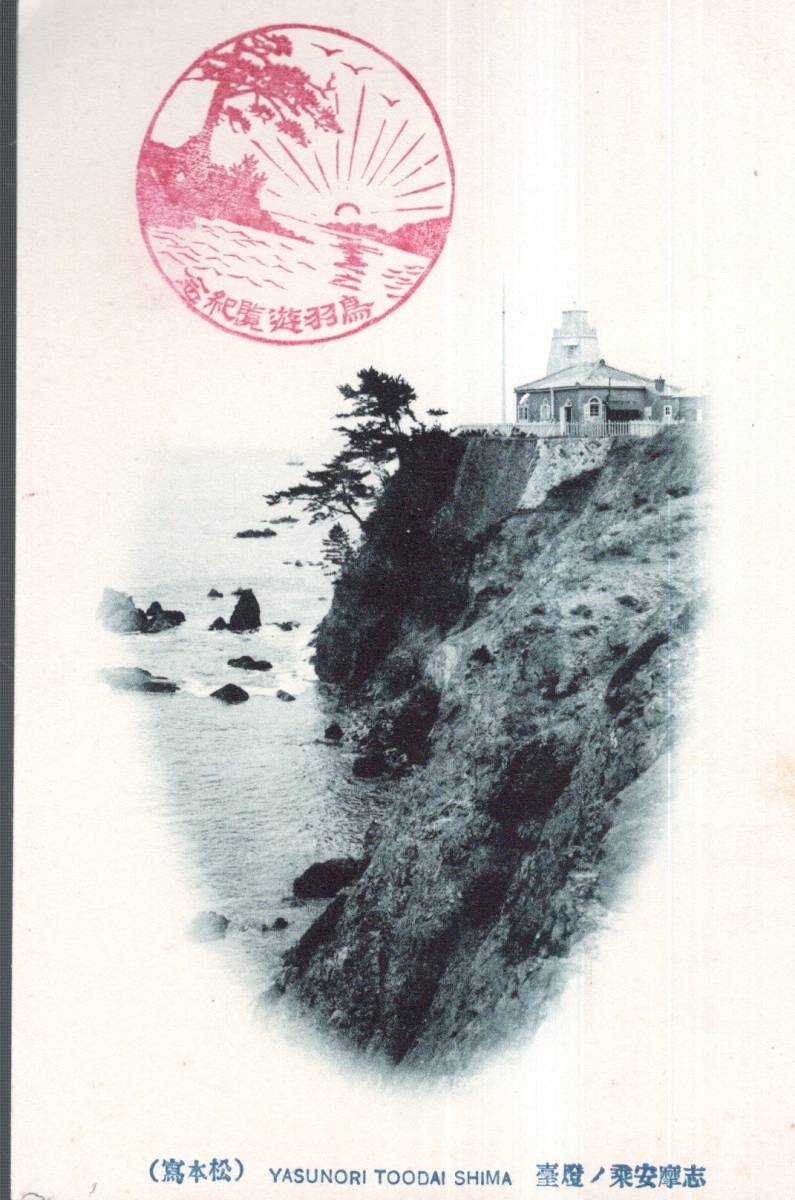 絵葉書 志摩安乗ノ燈台 鳥羽遊覧紀念スタンプ入り 港湾灯台絵はがき 仕切り線1/3