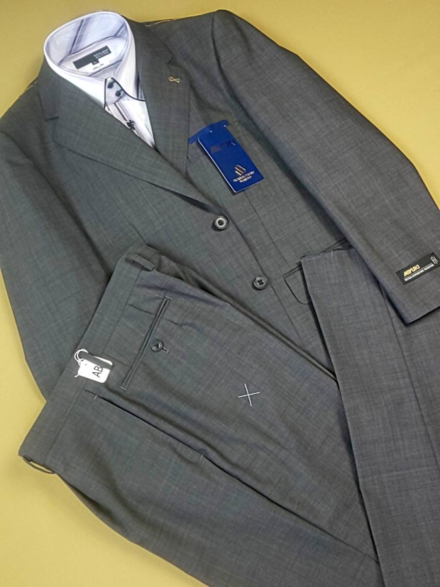 最終処分 MIYUKI 新品 SALE 70%OFF 二ッ釦スーツ ワンタックパンツ 春夏秋 AB4(ABM)サイズ W84cm ゆったり目 ウール100% 日本製生地 63003