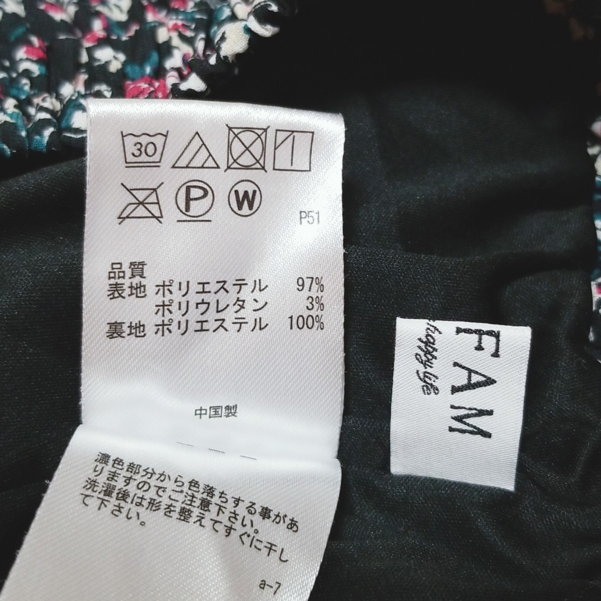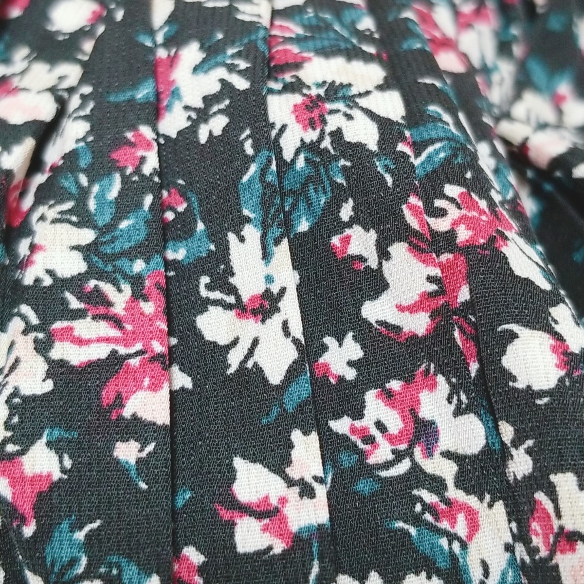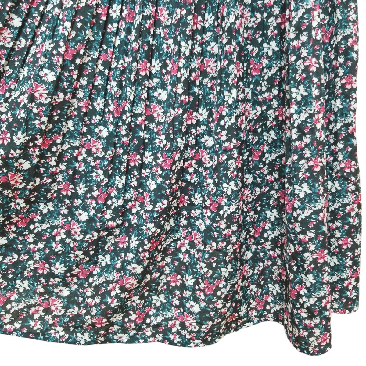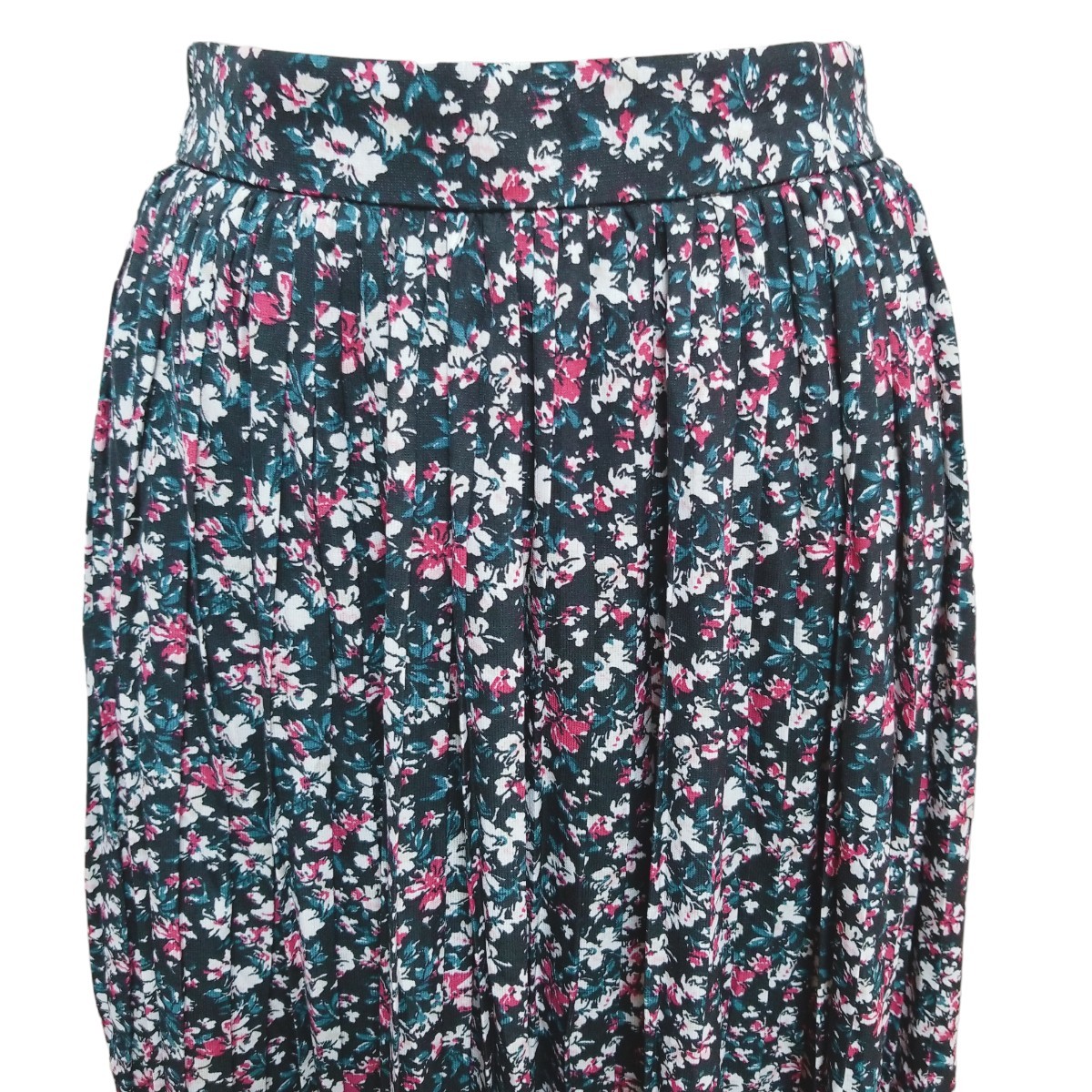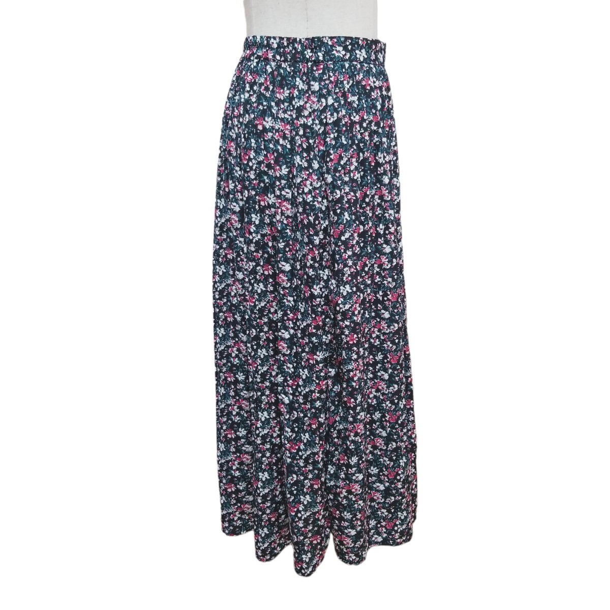 Y909 美品★any FAM エニィファム ロングプリーツスカート フレア レディース M相当 総柄 花柄 プリント 黒 ブラック ウエストゴム