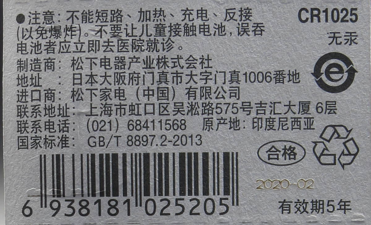 使用推奨期限:2025年2月(2020-02製造より5年間表示)