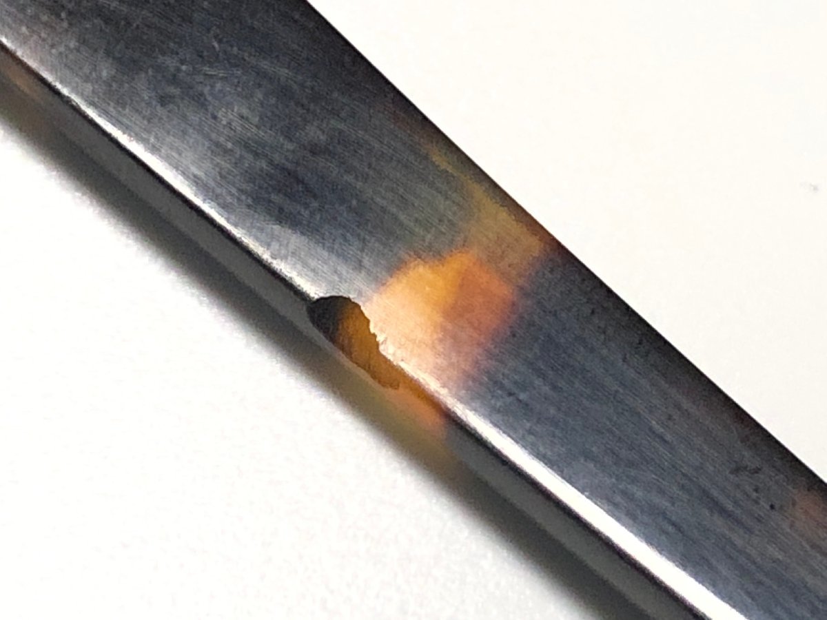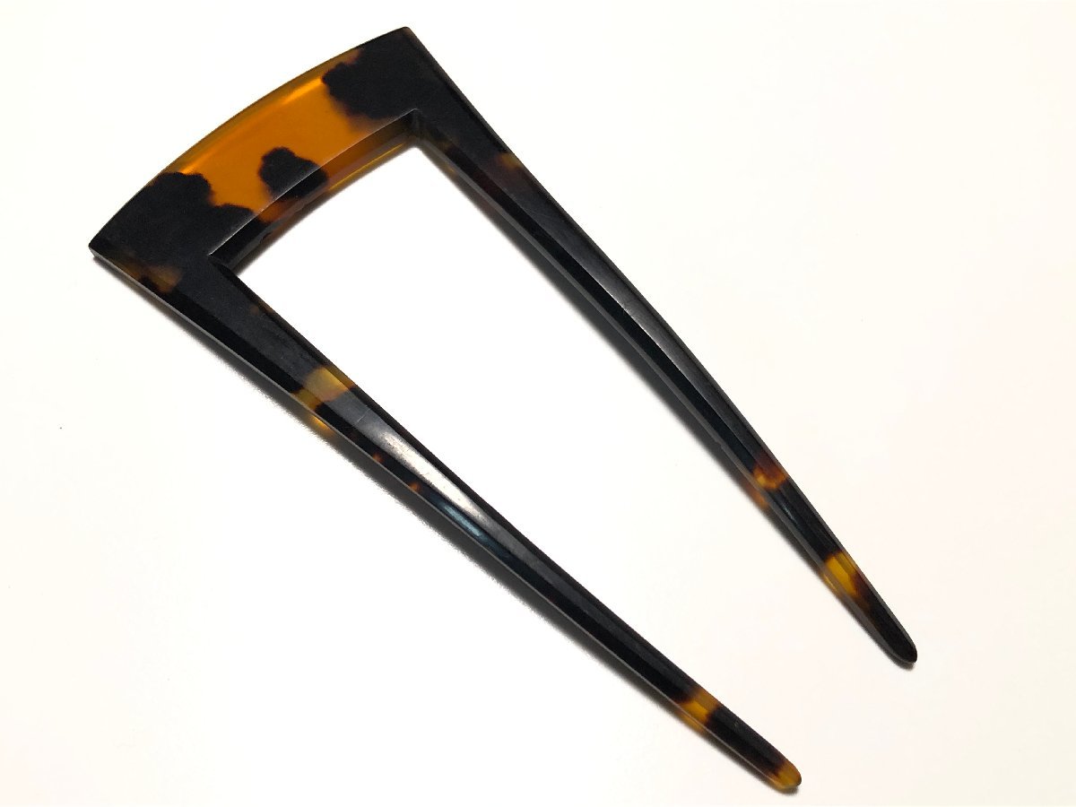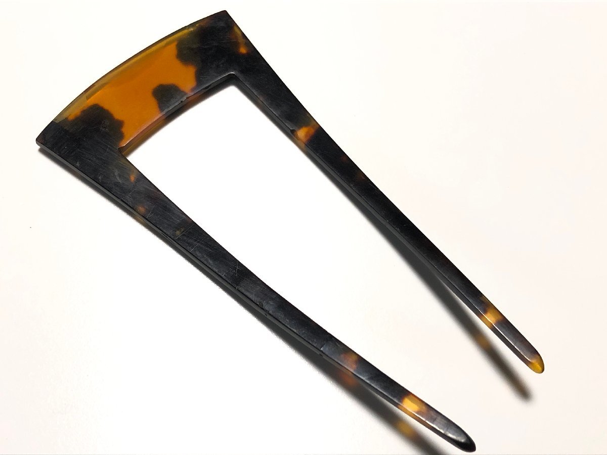 アンティークの本鼈甲を使用した、大振りの角形の簪です。裏の鼈甲部分に数か所の小さな虫食いがあります。