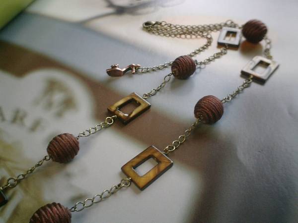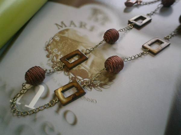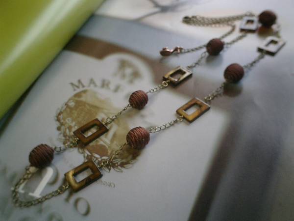 センチメンタルシリーズです♪シックな秋色に染まって・・ロマンチックなネックレスです♪シックなブラウンでまとめました!ゴールドブラウン色のシェルスクエアは13×18ミリ位です♪ブラウン色の14ミリ位のサテンボールを合わせて大人のロマンチックしています♪シンプルで合わせやすいデザインです♪長さは全長84センチ位で調節自由です♪2連にしてチョーカー風に着けても素敵です♪お揃いのブレスレットや同じシリーズも出品しています♪シンプルで飽きのこないいつまでも着けられるデザインを考えて作りました!ハンドメイドをご理解頂いてノークレーム、ノーリターンでお願いします
