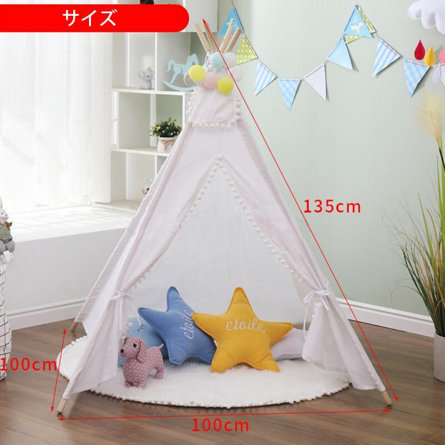 ストラップで固定されており、形が崩れにくいです。広げて結ぶだけでかわいいテントが出来上がります。