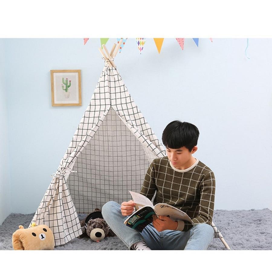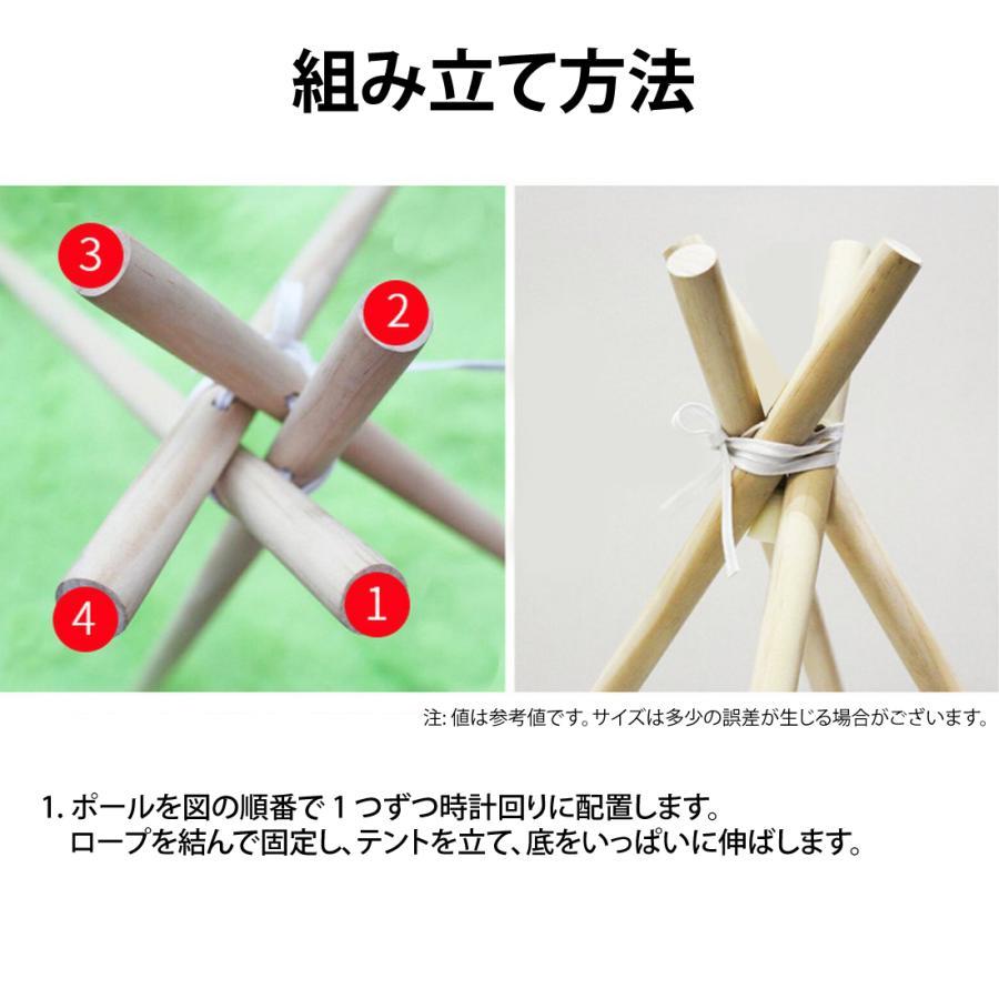 4つのポールは、バリのない滑らかな桐の無垢材でできています。天然コットンを使用しており、肌触りも◎。格子窓のデザインで通気性がよく、蒸れにくいです。中の様子を確認できるので小さなお子様にも安心です。