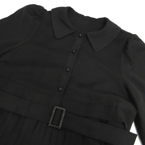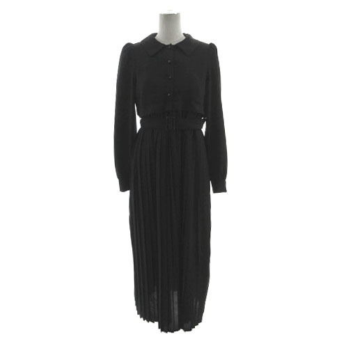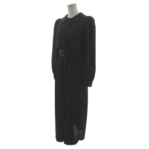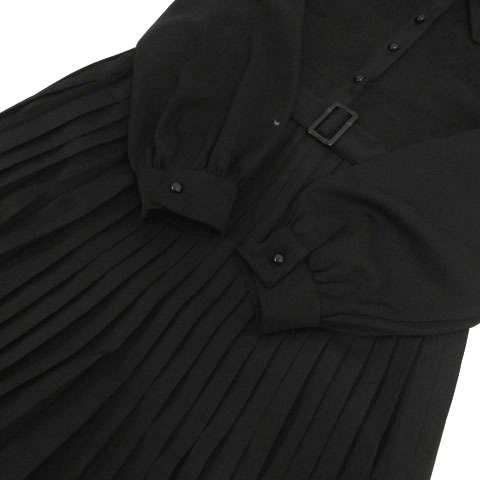 アード アー・ヴェ・ヴェ A de a.v.v プリーツドッキングワンピース 長袖 ロング丈 ベルト付きブラック 黒 S レディース