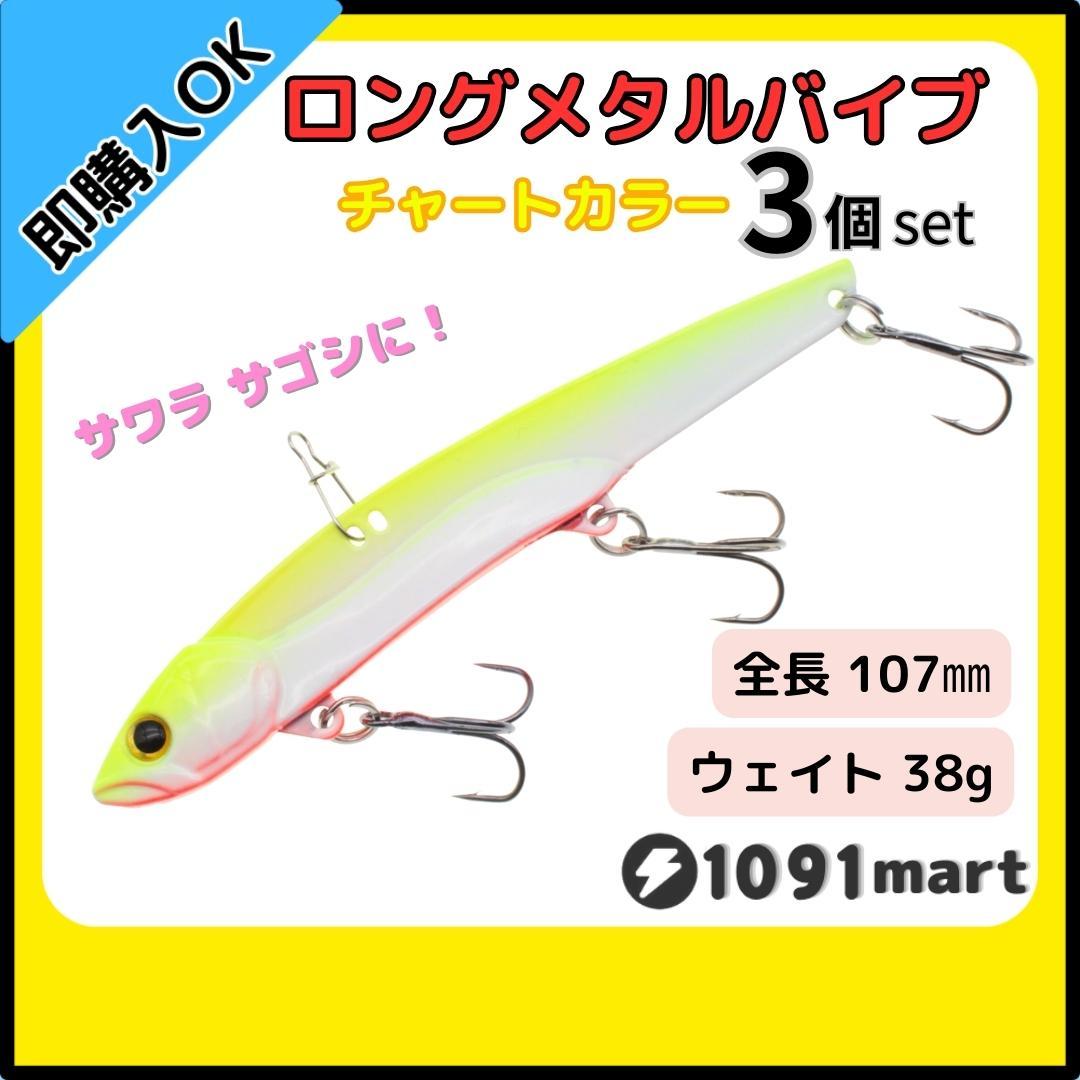 【送料無料】ビッグバッカー107HW風 メタルバイブ チャートカラー 3個セット 鉄板 バイブレーション メタルジグ 青物 ルアー