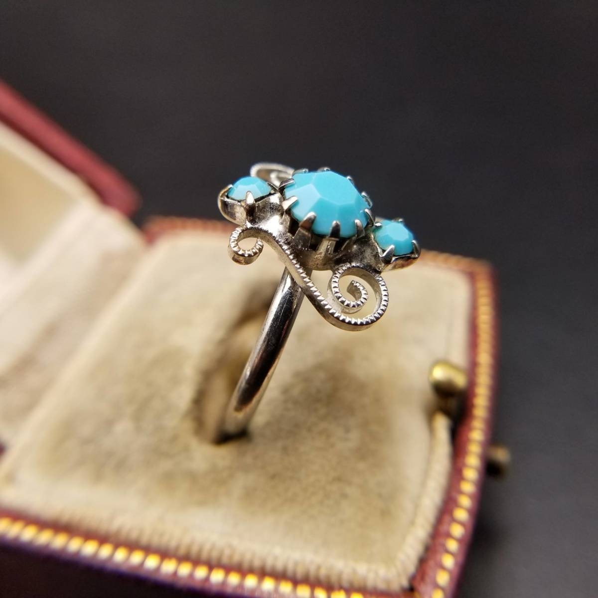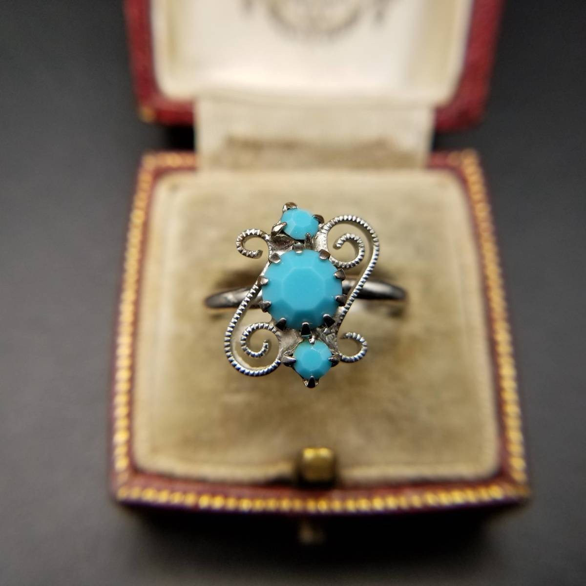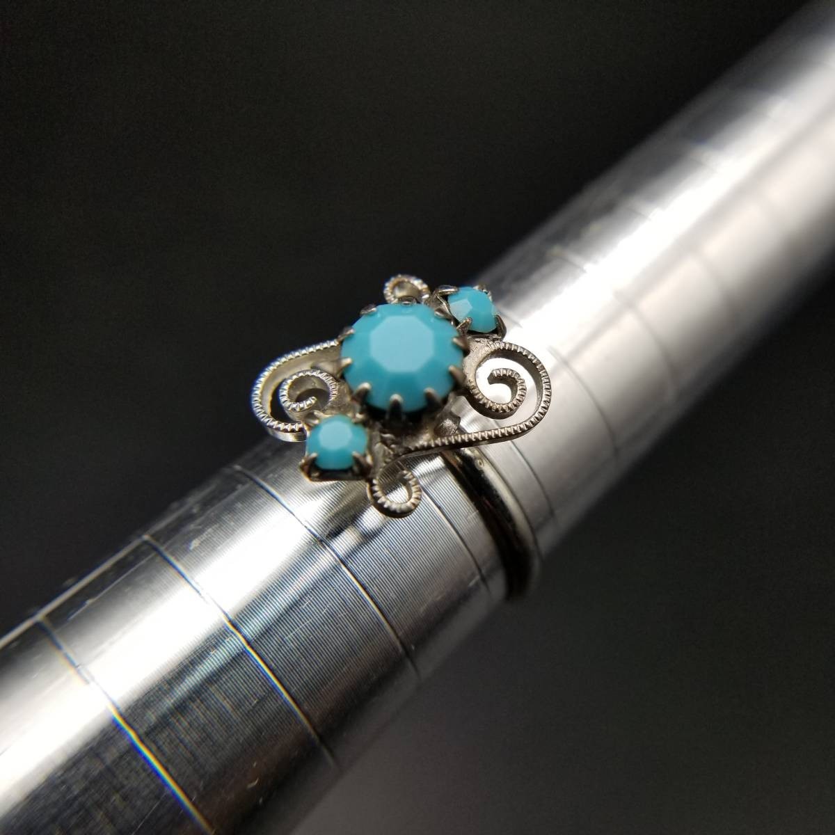 米国ビンテージ リング ライトブルー シルバートーン アールデコ 昭和レトロ コスチューム ジュエリー イミテーション YNV②59
