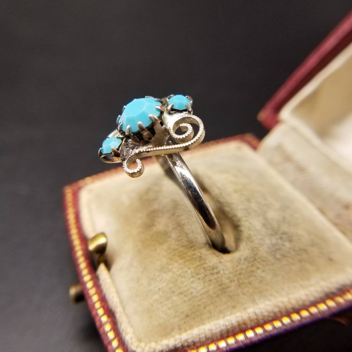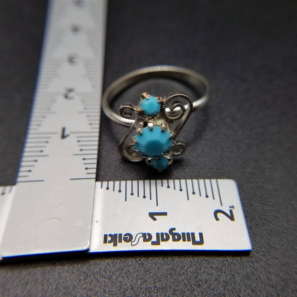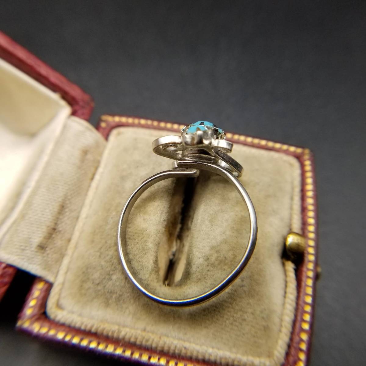 米国ビンテージ リング ライトブルー シルバートーン アールデコ 昭和レトロ コスチューム ジュエリー イミテーション YNV②59