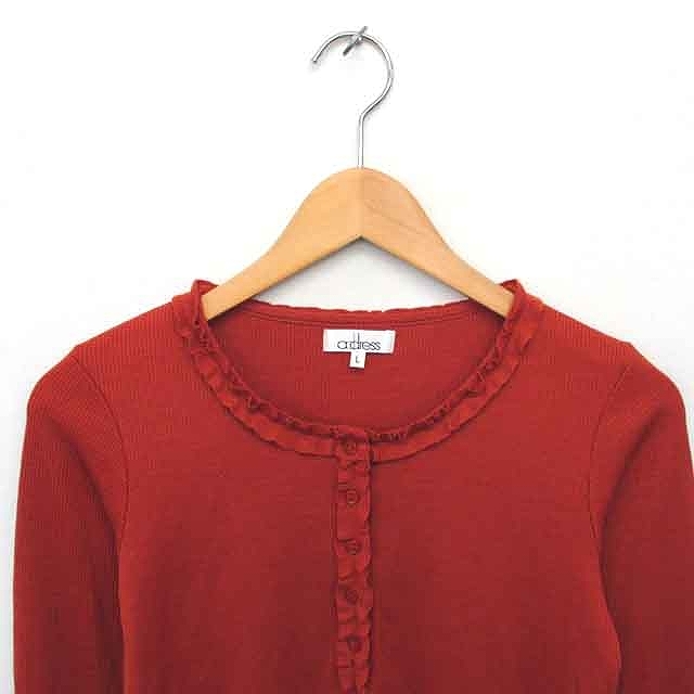 アドレス Address カットソー ニット フリル ヘンリーネック 薄手 ウール 長袖 L ブラウン /TT19 レディース