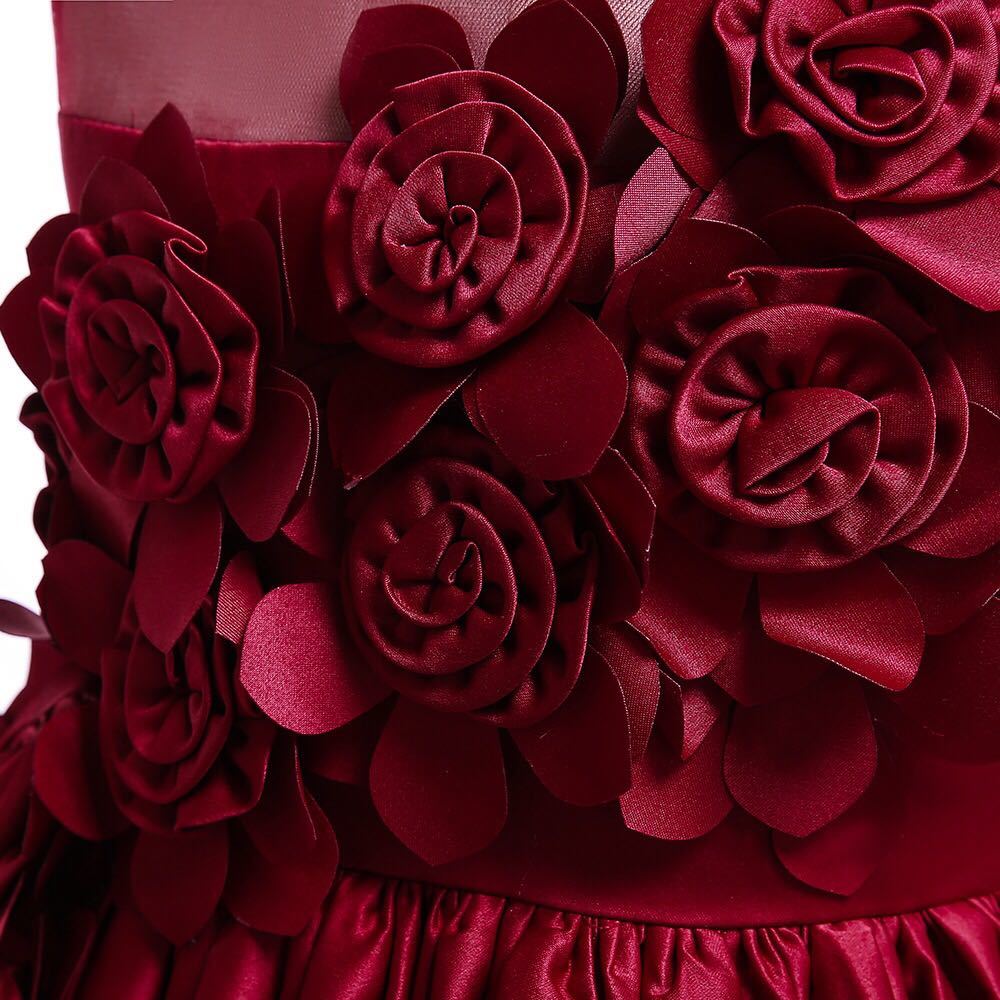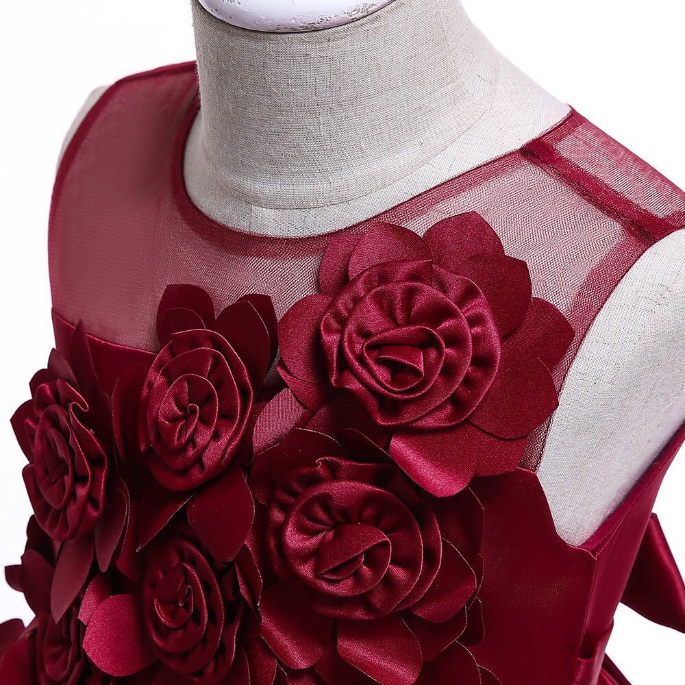 可愛い立体花がいっぱいで膝上の丈になりとてもふんわりのドレスです。結婚式、誕生日、七五三の他、バイオリン発表会、ピアノ発表会、エレクトーン発表会などにもぴったりです。