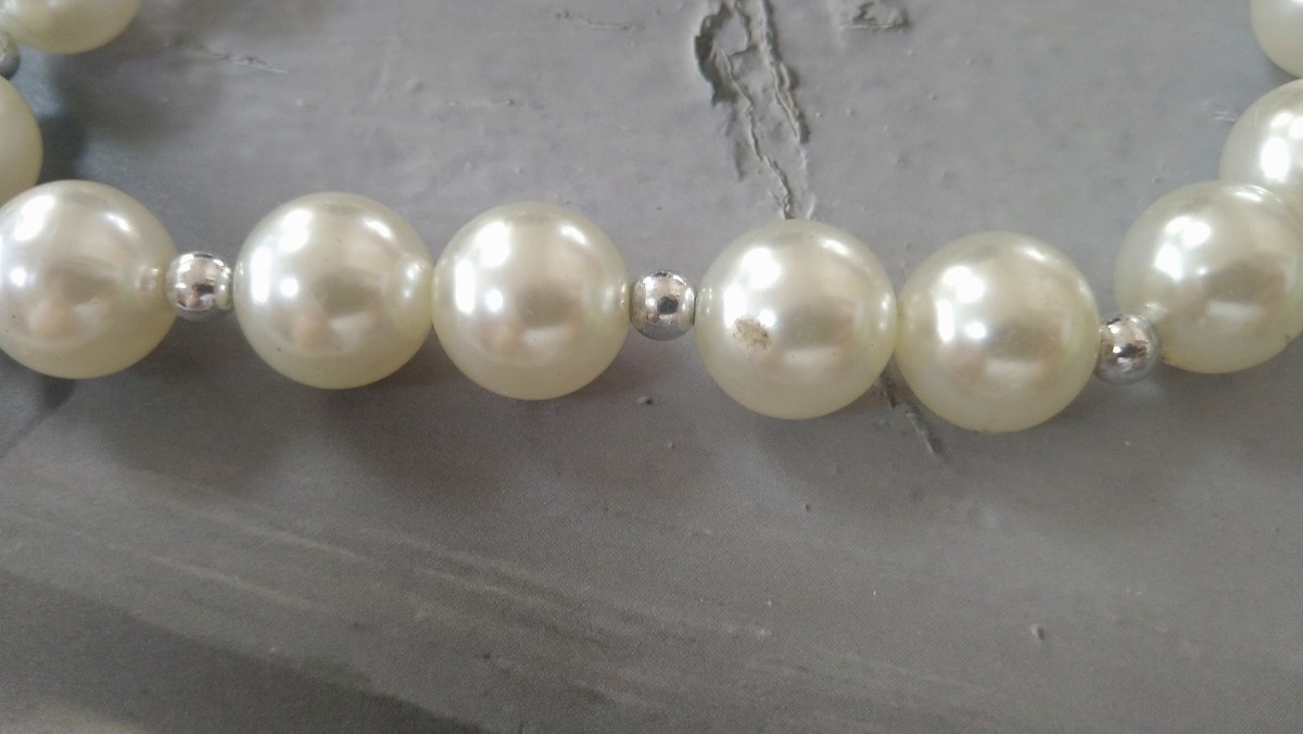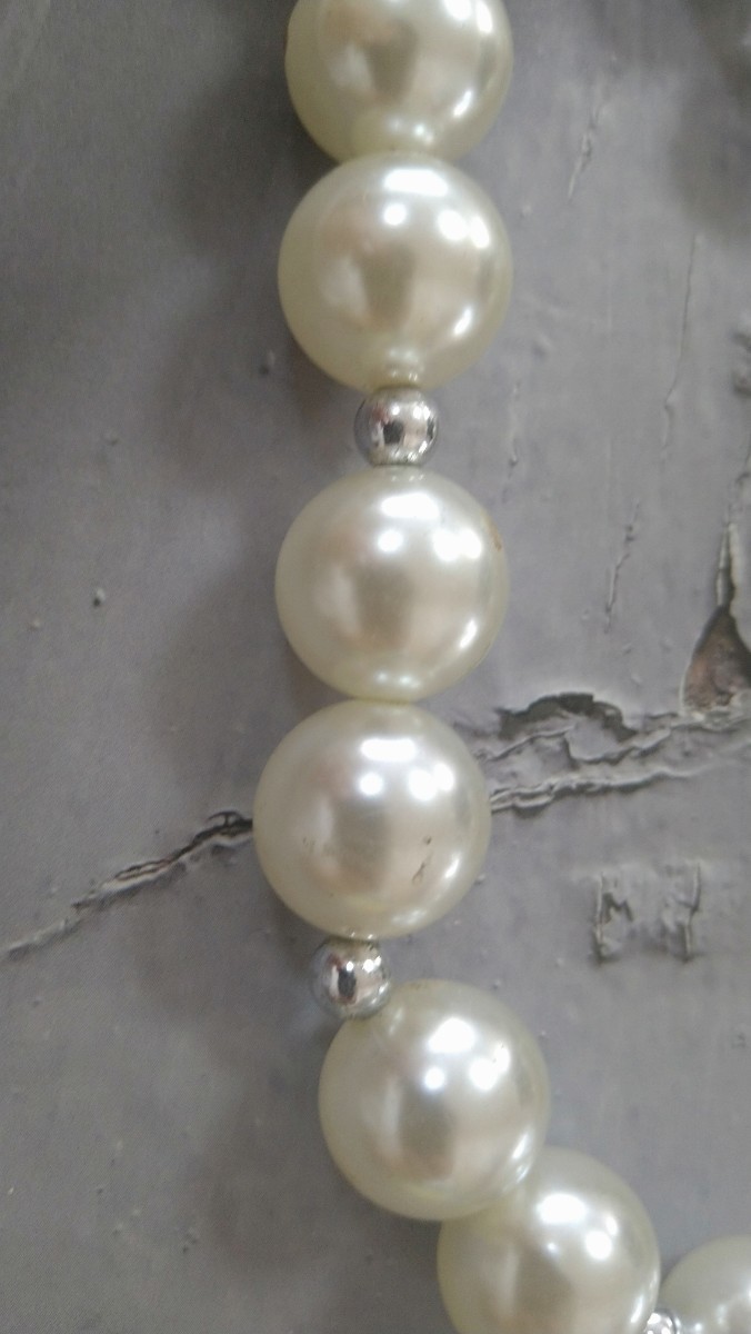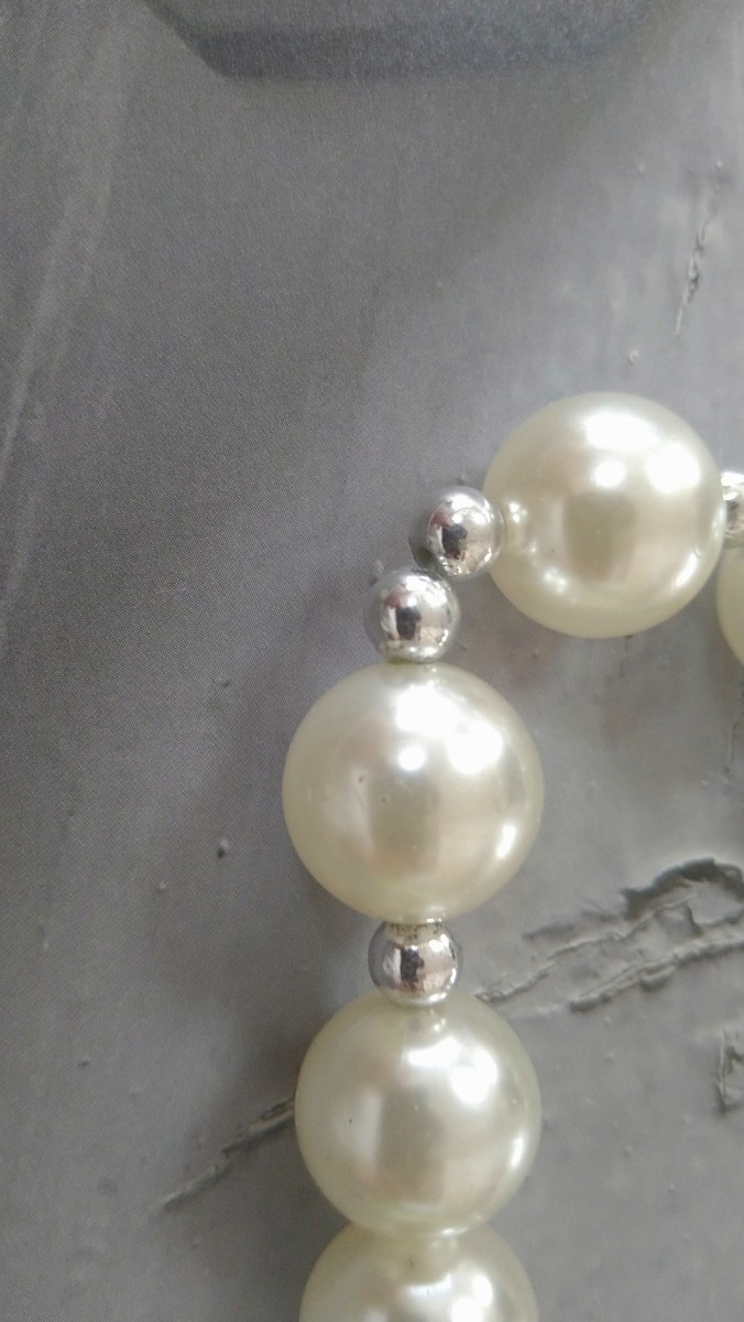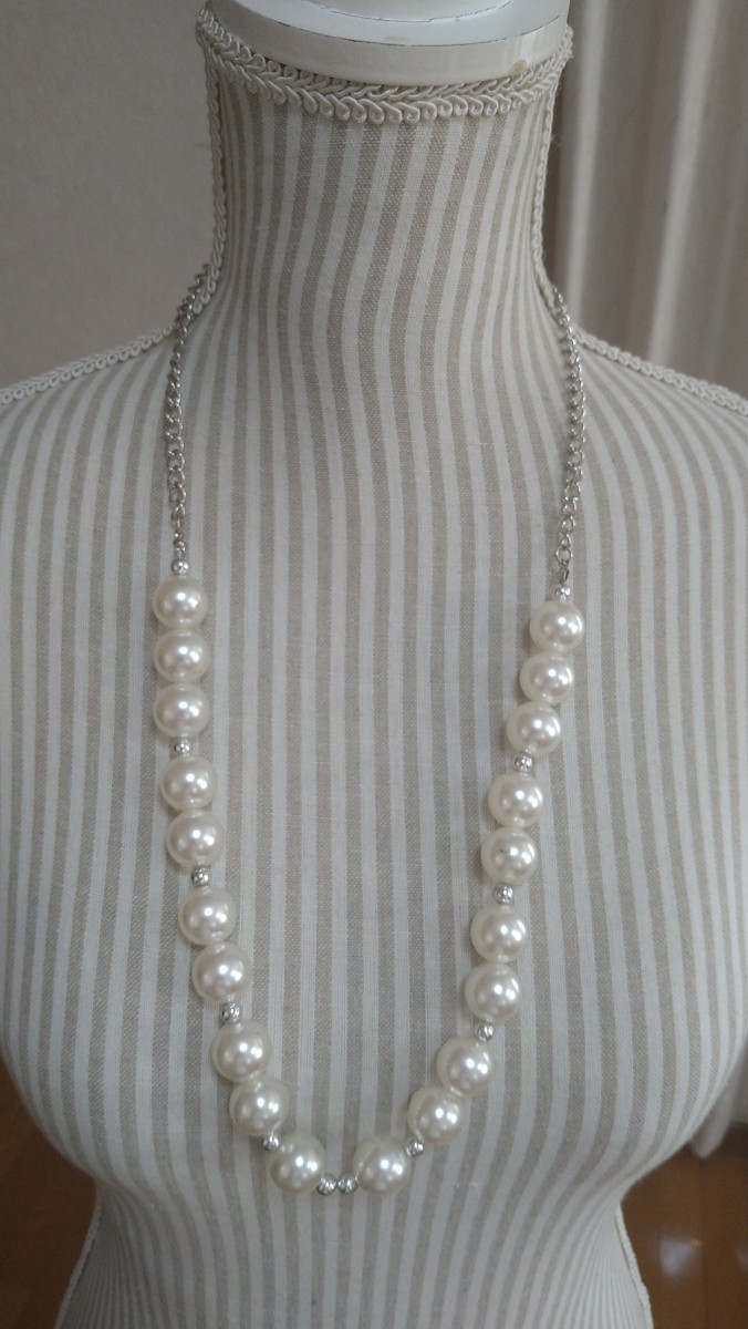訳あり 大玉パールビーズ×シルバーカラービーズ ネックレス | |||