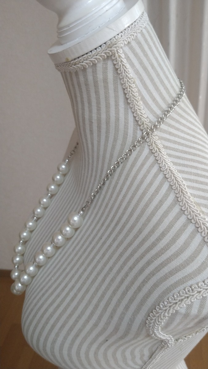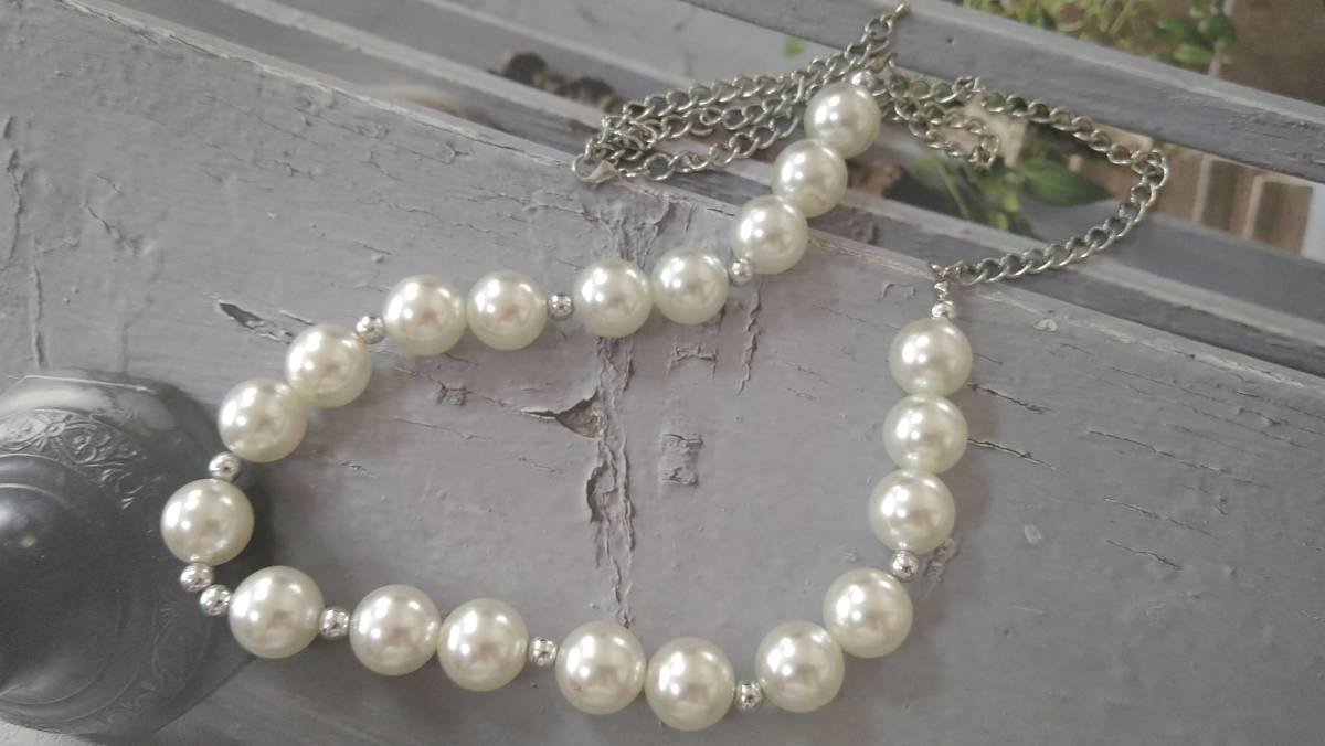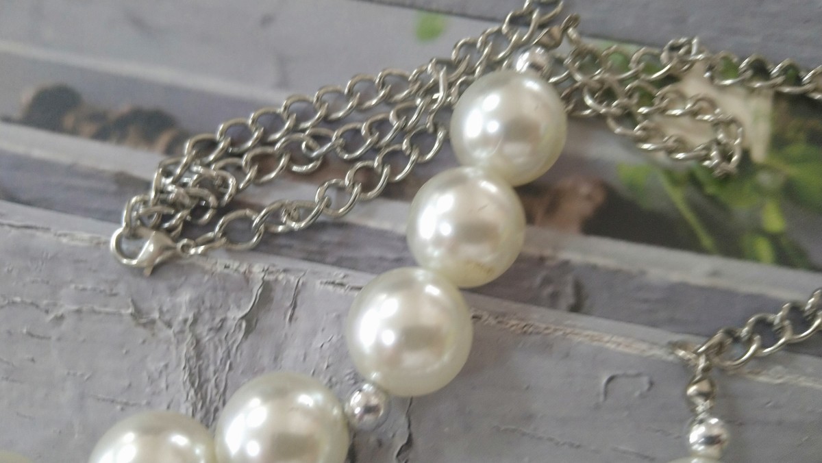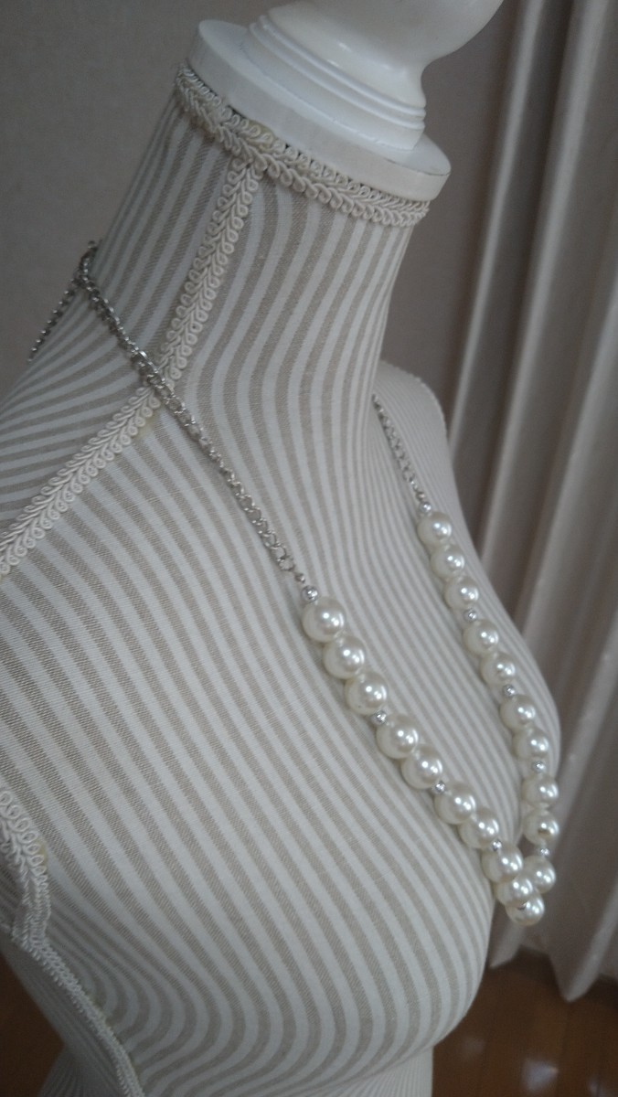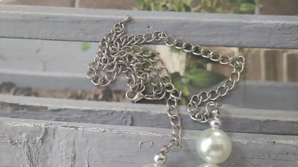訳あり 大玉パールビーズ×シルバーカラービーズ ネックレス | |||