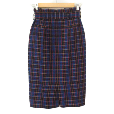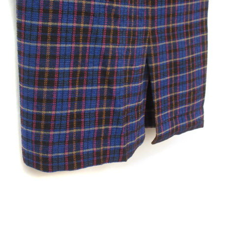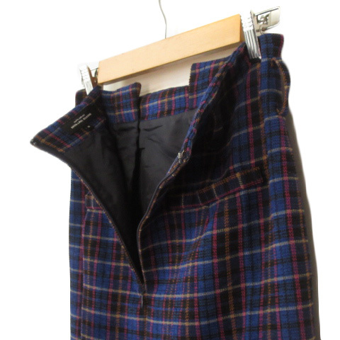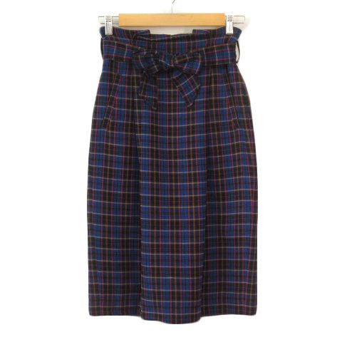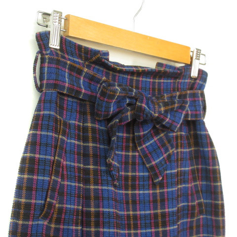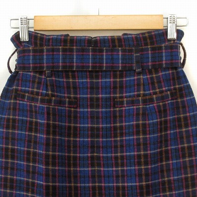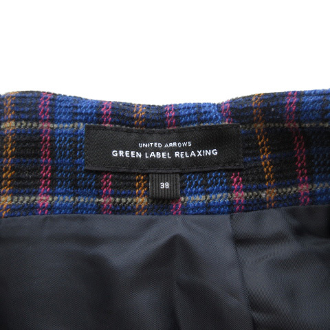 グリーンレーベルリラクシング ユナイテッドアローズ green label relaxing スカート チェック 刺繍 ベルト 38 青 ブルー レディース